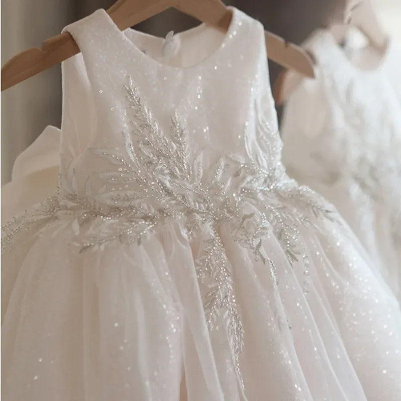 Have her experience the breathtaking beauty of the "Deidre-Marie" dress, perfect for any special occasion and designed to make your little angel shine at every event. Perfectly tailored for weddings, parties, recitals, and more, this exquisite dress is a must-have for every girl's wardrobe. Its stunning sequin embellishments create a magical shimmer that ensures she'll be the center of attention.