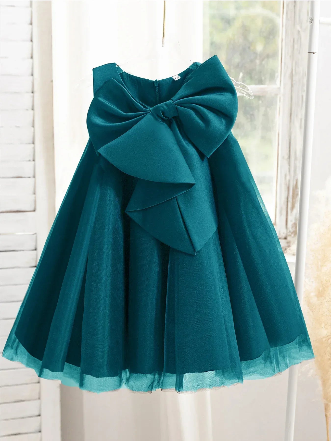 The standout feature of the "Sari-Ell" dress is its magnificent oversized bow, which adds a delightful touch of whimsy. Available in five stunning colors—classic black, vibrant peacock blue, bold red, charming princess pink, or pure white—this dress is sure to turn heads and make a statement!