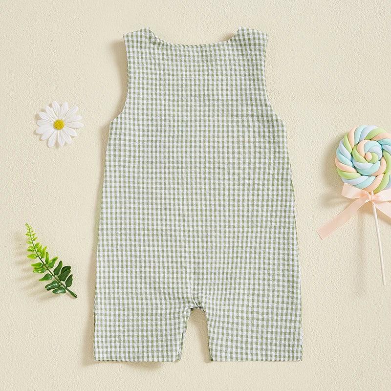 Celebrate your little one's milestone in style with our adorable "First Birthday" Embroidered Romper! Available in charming blue or green checks, this delightful romper features a bold "One" embroidered on the front, making it perfect for both boys and girls. Its sleeveless design is ideal for the warmer spring and summer months, while easily layering with a cardigan or top for cooler days.