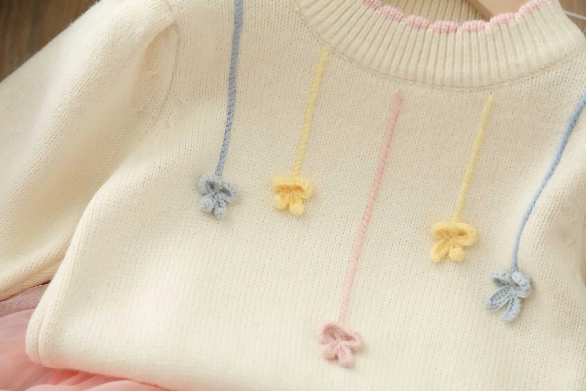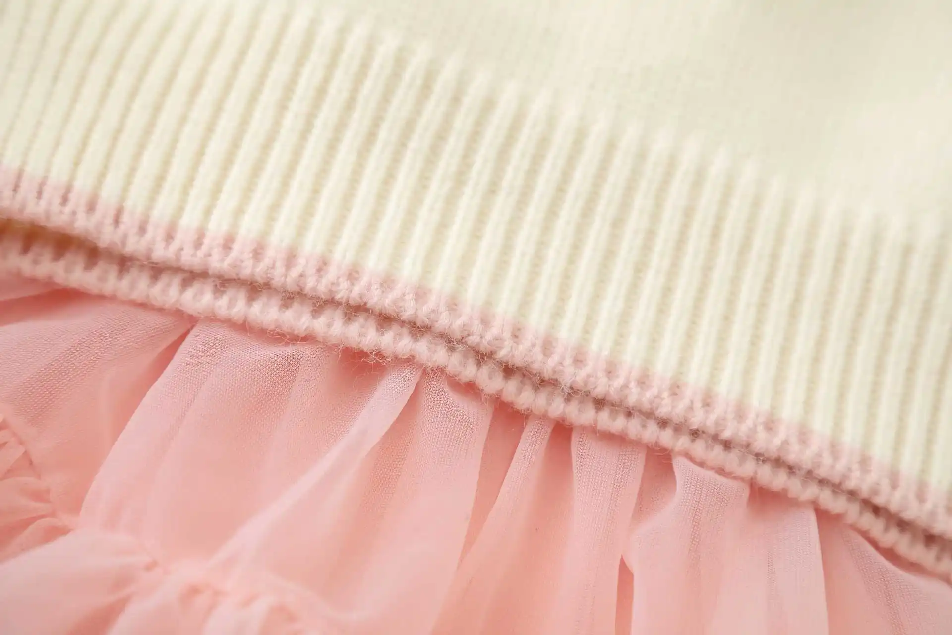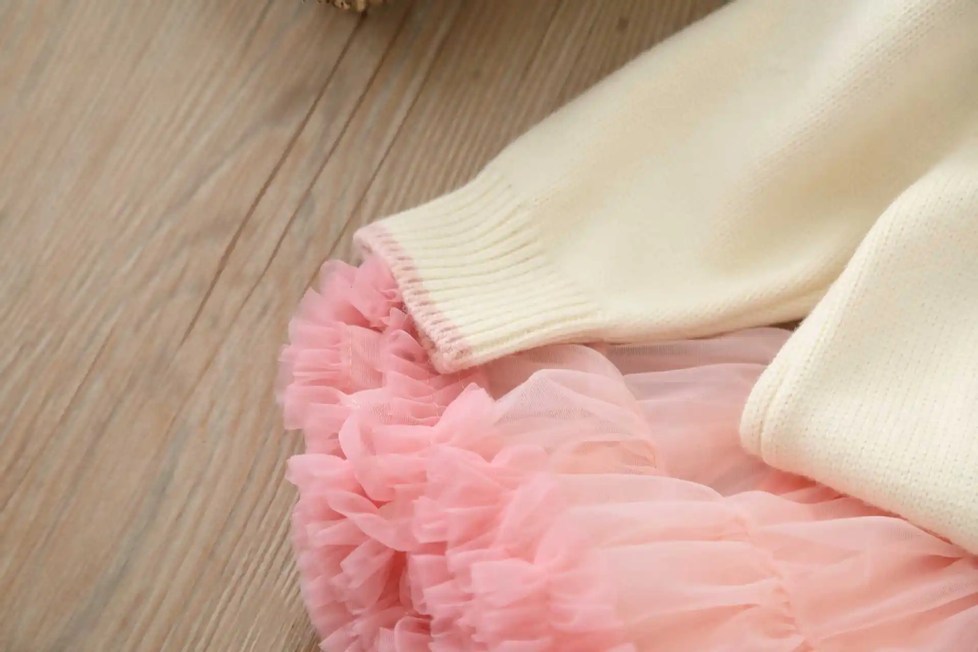 Warm Knit Sweater + Fluffy Tulle Skirt: The soft knitted sweater ensures autumn/winter warmth, while the tulle skirt brings a dreamy, princess-like flair—balancing comfort and style.