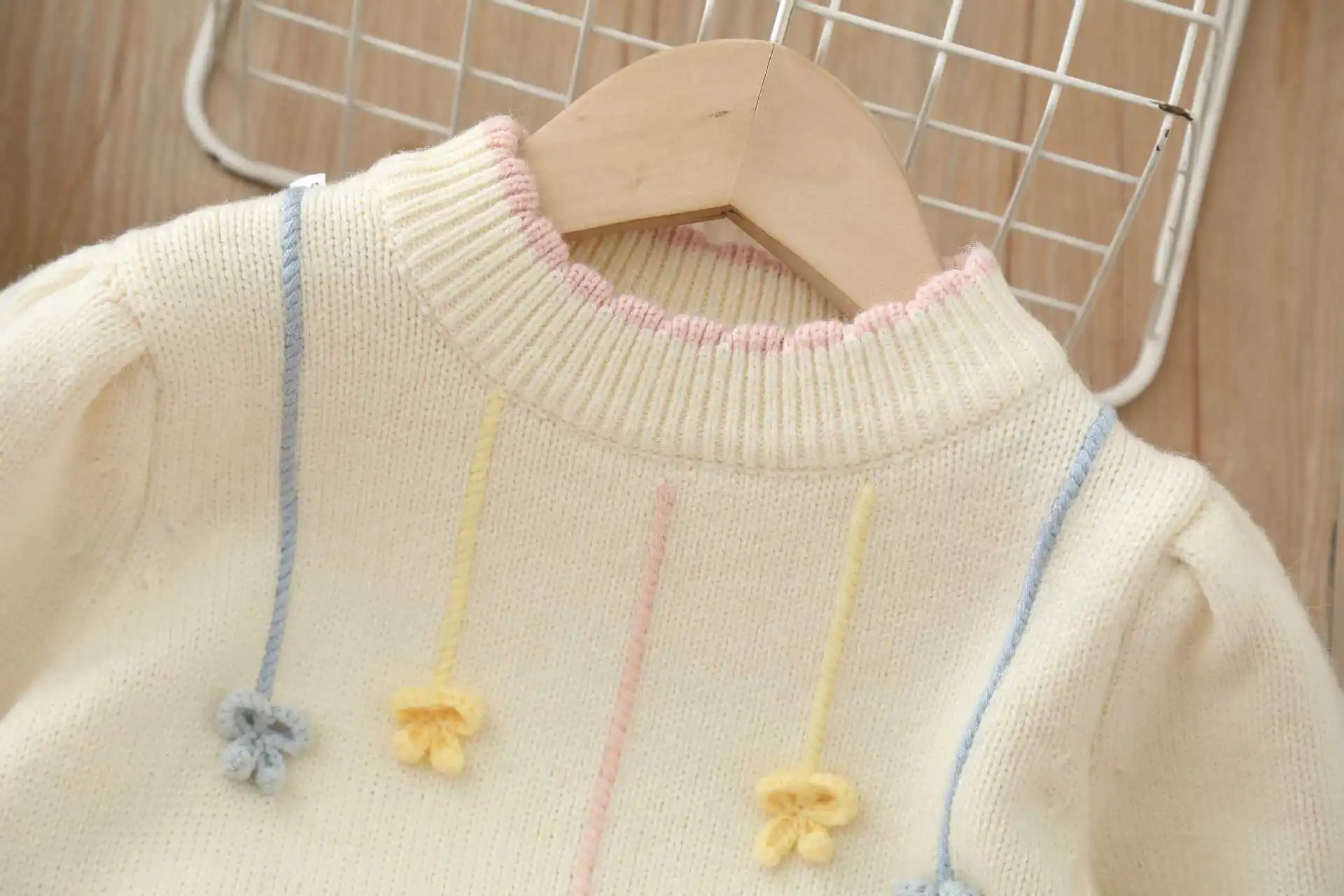 Handmade Floral Embellishments: Features delicate handmade flowers, embodying the "handmade aesthetic" trend for unique, charming kids' clothing.