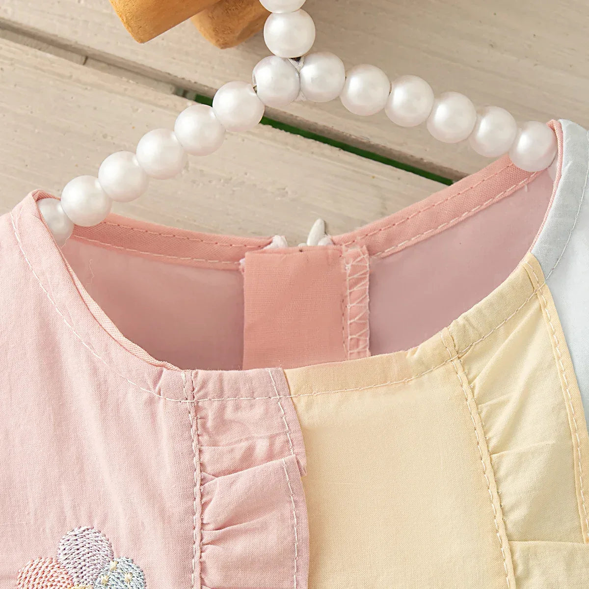Elevate your little one's wardrobe with the exquisite "Prissy" Pastel Party Dress, expertly designed for those enchanting spring and summer occasions. This delightful dress showcases charming embroidery and delicate ribbons in soft pastel hues of pink, yellow, and blue, ensuring your child stands out with grace and elegance.