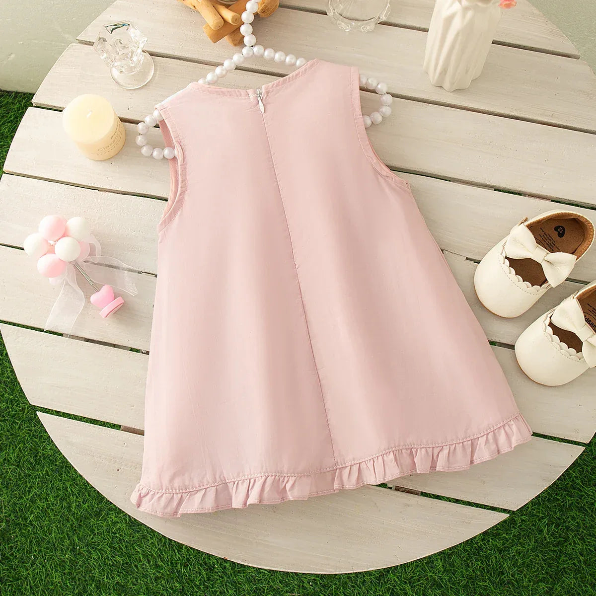 Made from a high-quality cotton blend, this dress is easy to care for, making it perfect for busy parents. Simply hand wash in cold water and line dry to keep it looking fresh and beautiful for every occasion. Whether it’s a birthday party, garden celebration, family wedding, or charming Easter gathering, this dress adds a touch of luxury to any event.
