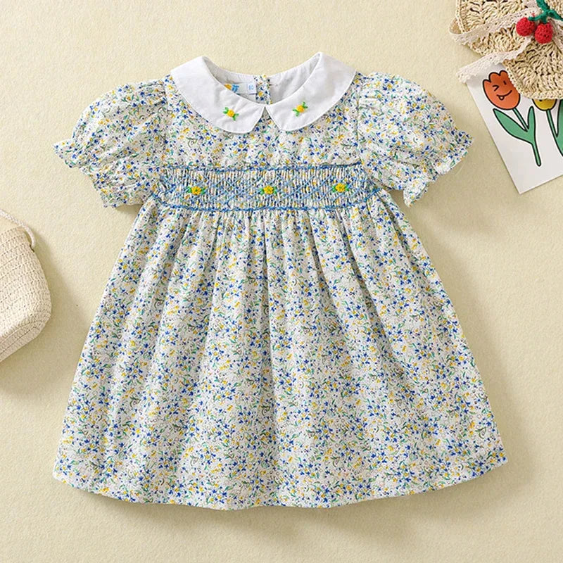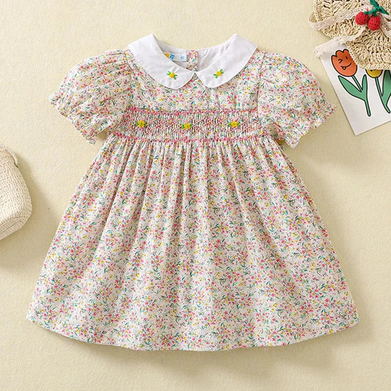 Introduce a touch of whimsy to your little one's wardrobe with our "Spring Sweetness" Smocked Floral Party Dress! This delightful smocked floral party dress is crafted from lightweight cotton, making it perfect for those sunny spring and summer occasions. Available in sizes from 7 months to 6 years, this dress is ideal for birthday bashes, garden parties, and everything in between.