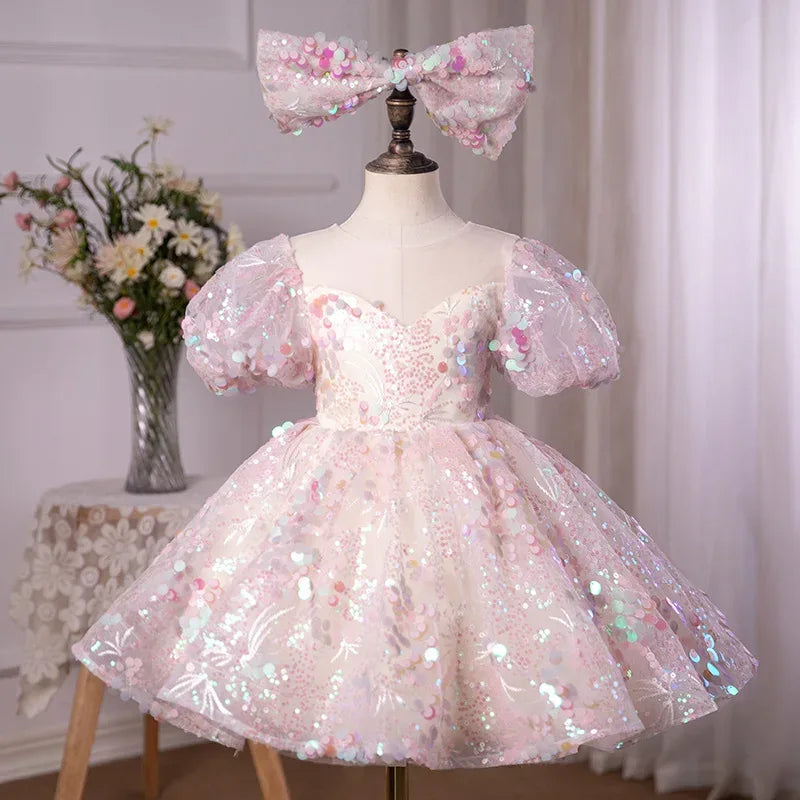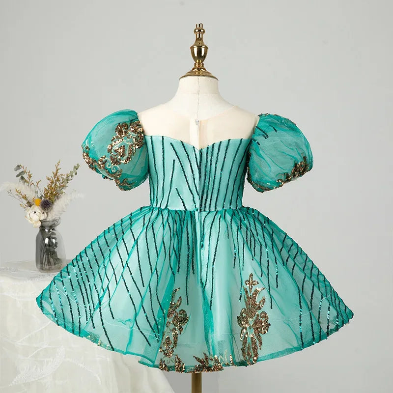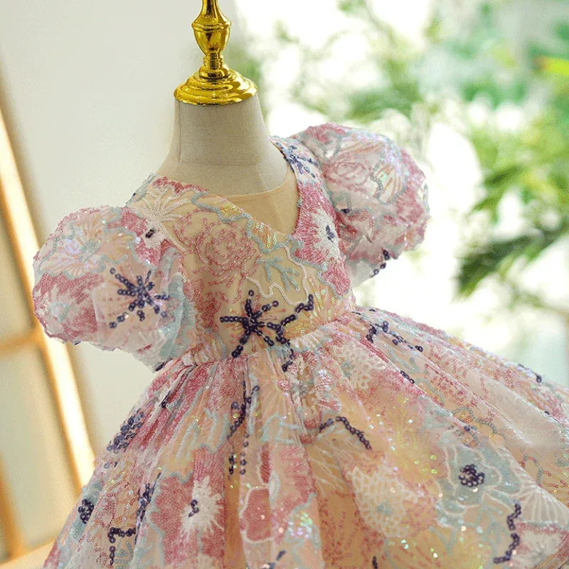Let your child shine her brightest in the "Stella" Sparkling Floral Occasion Party Dress – where every twirl is a celebration!