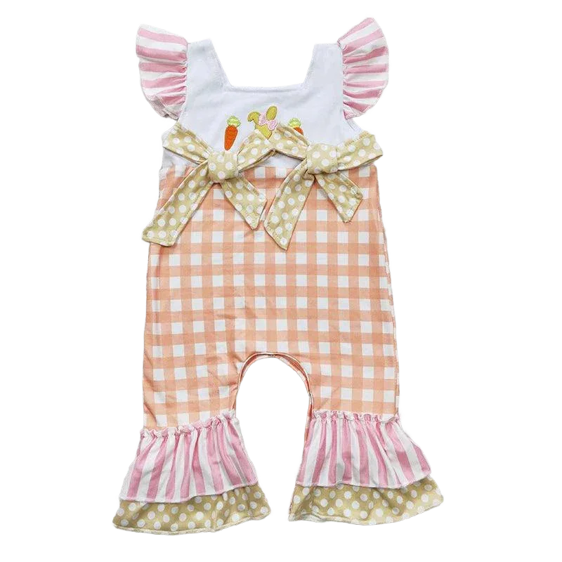 Spring Bunny Little Girls Boho Romper Adorable Checks And Bows