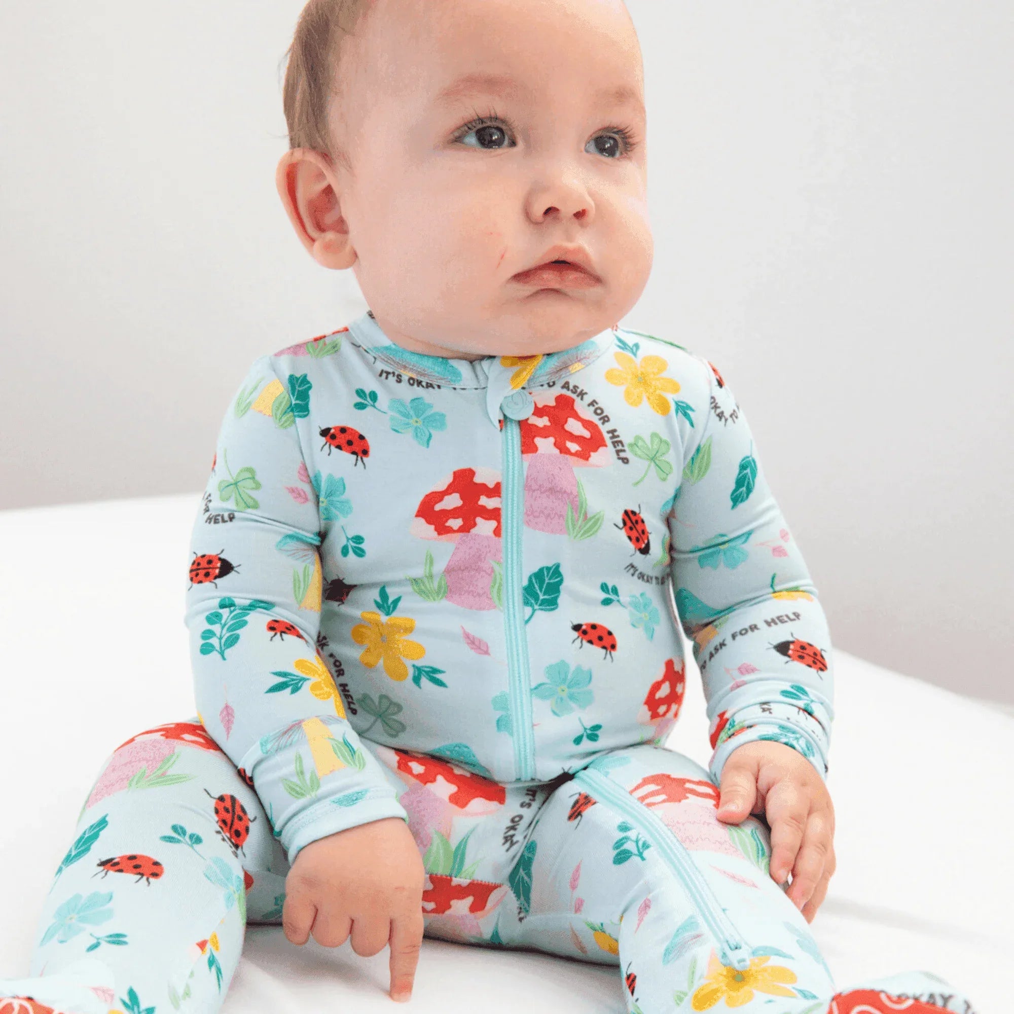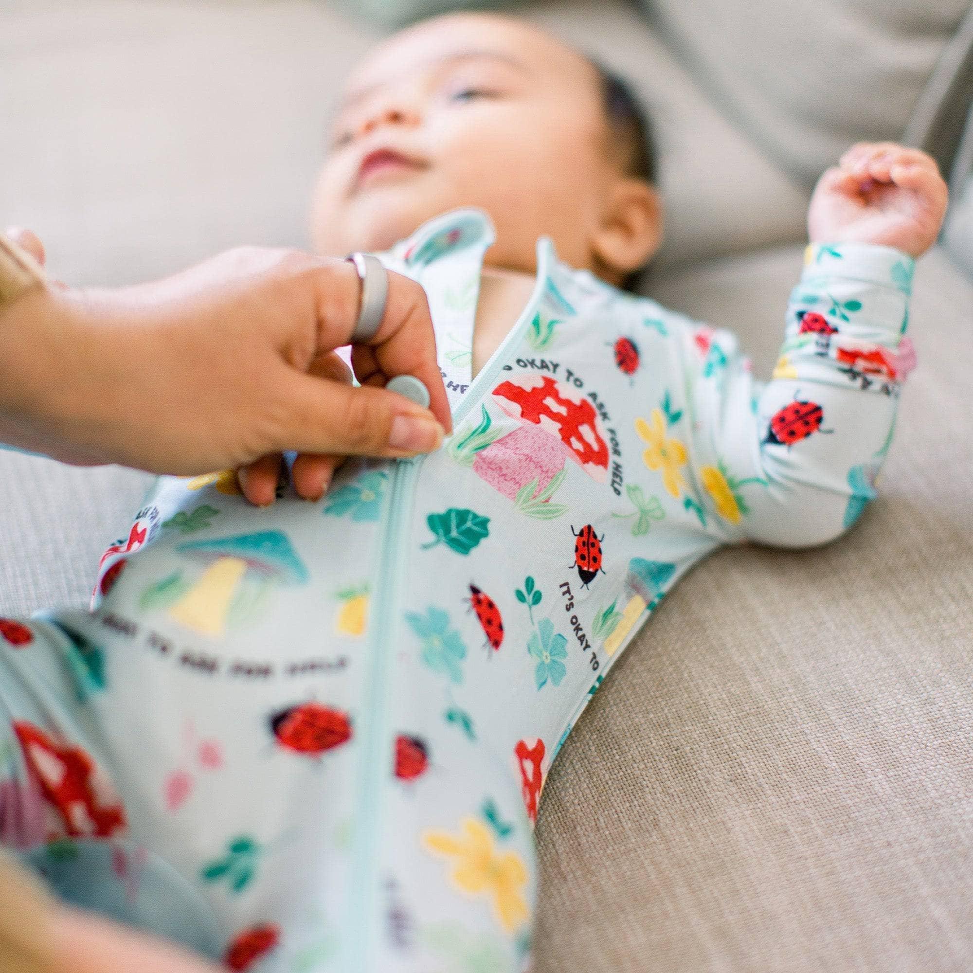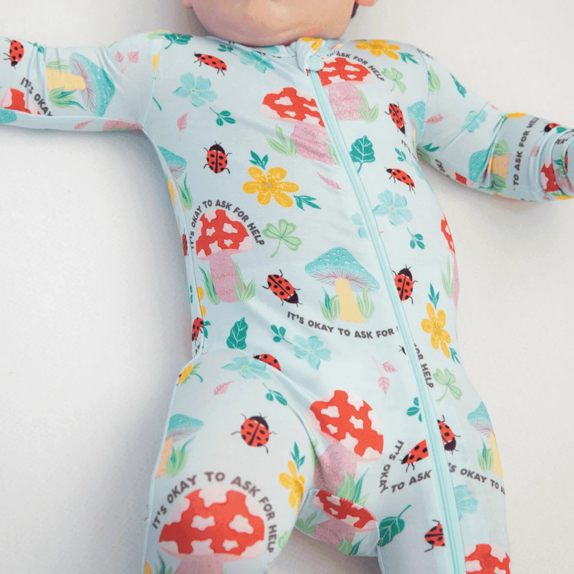 The playful magic mushroom print adds fun. Bright red mushrooms and cheerful ladybugs create a happy look. The magic mushroom baby footie features a smooth zipper for quick changes, making life easier for busy parents.