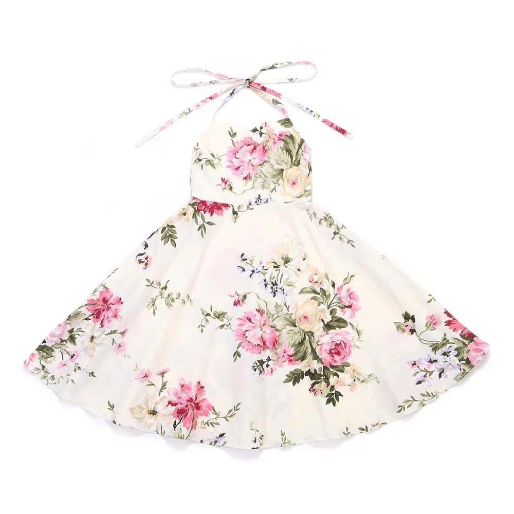 "Florencia" Girl's Floral Sundress For Girls - Cute Halter Neck, Twirl-Worthy Design