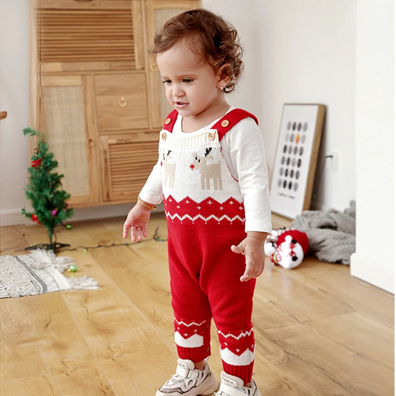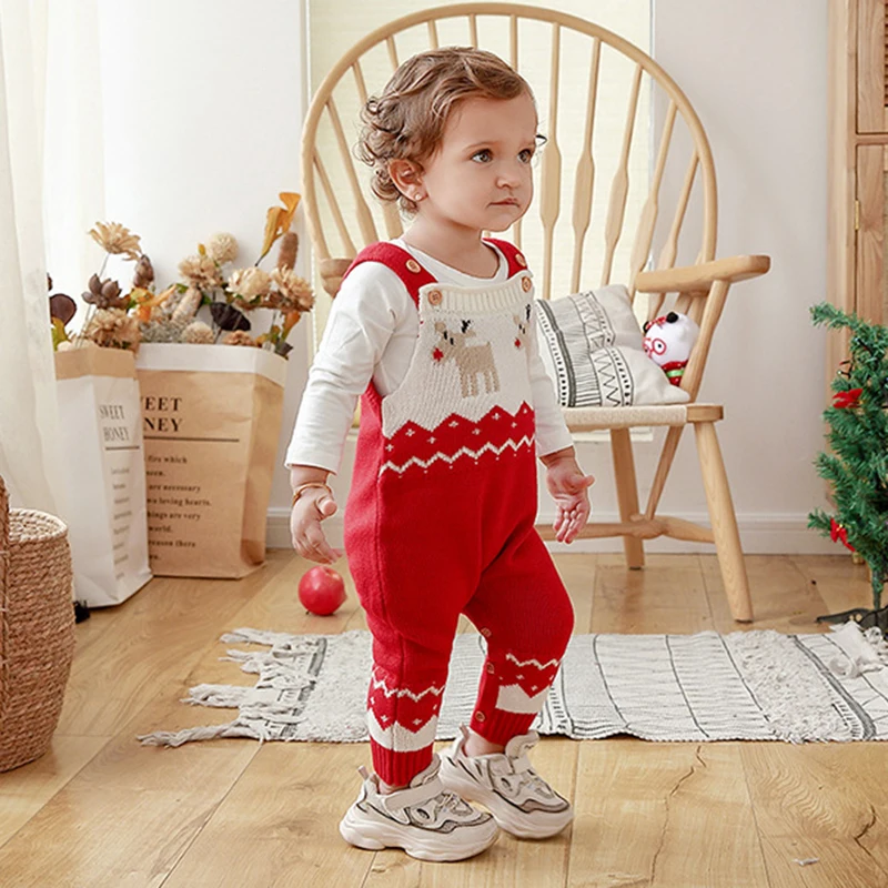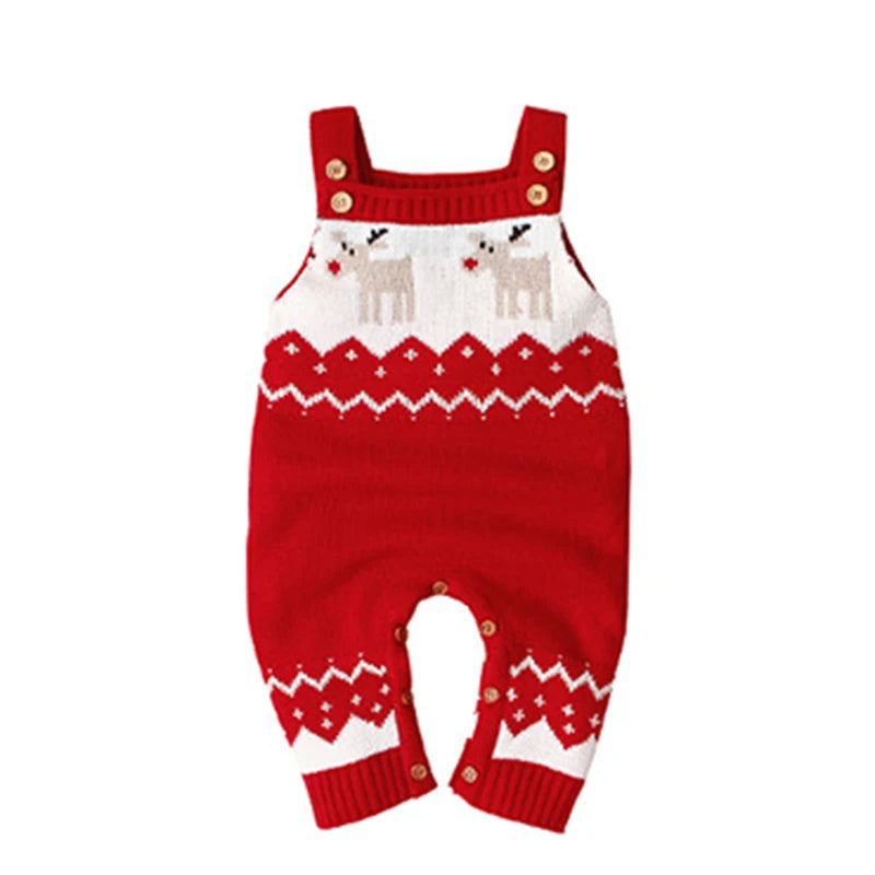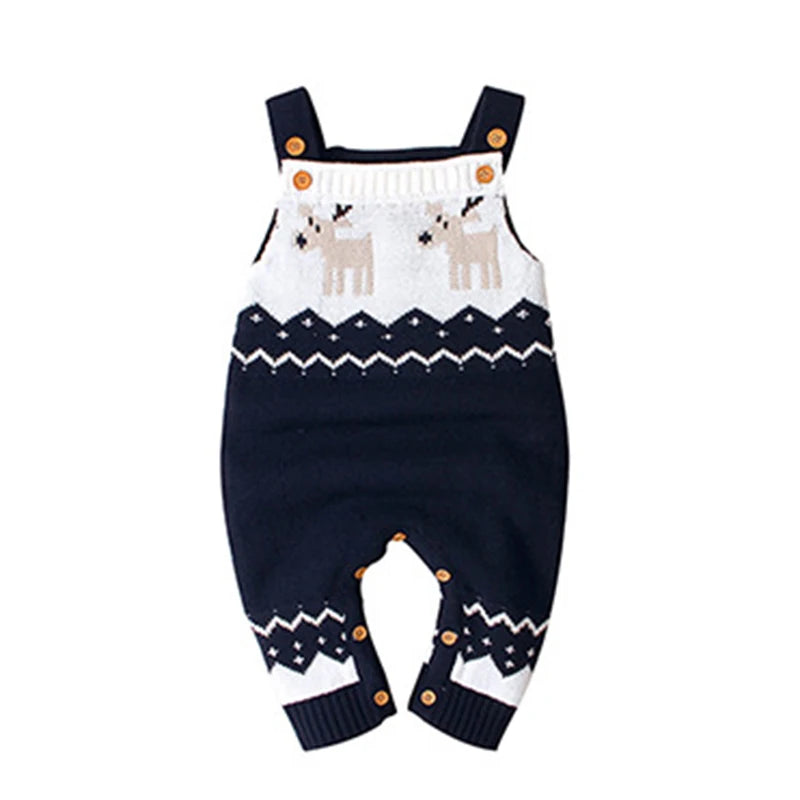 Adorable Reindeer Winter Cutie Baby Knit Romper Overalls