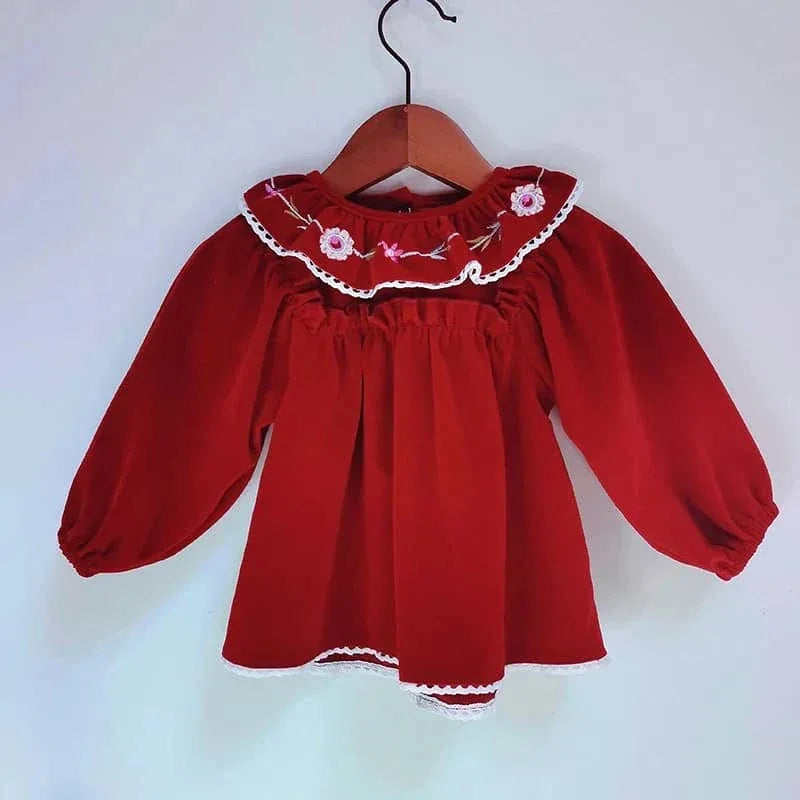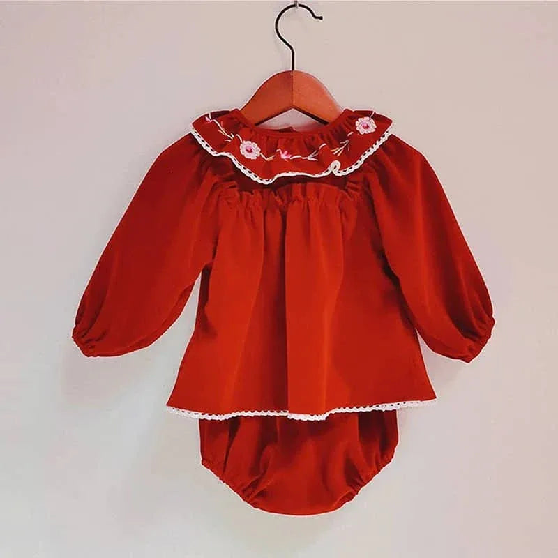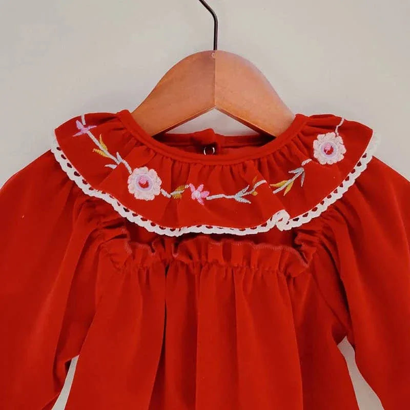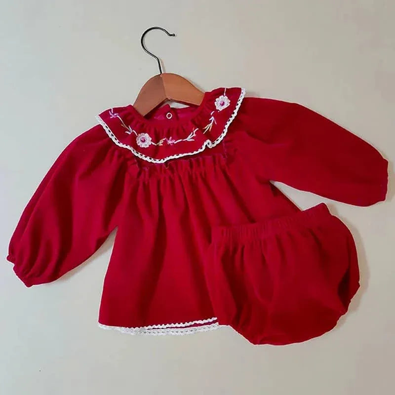 Eidelweis Baby Red Velvet Outfit with Embroidered Collar