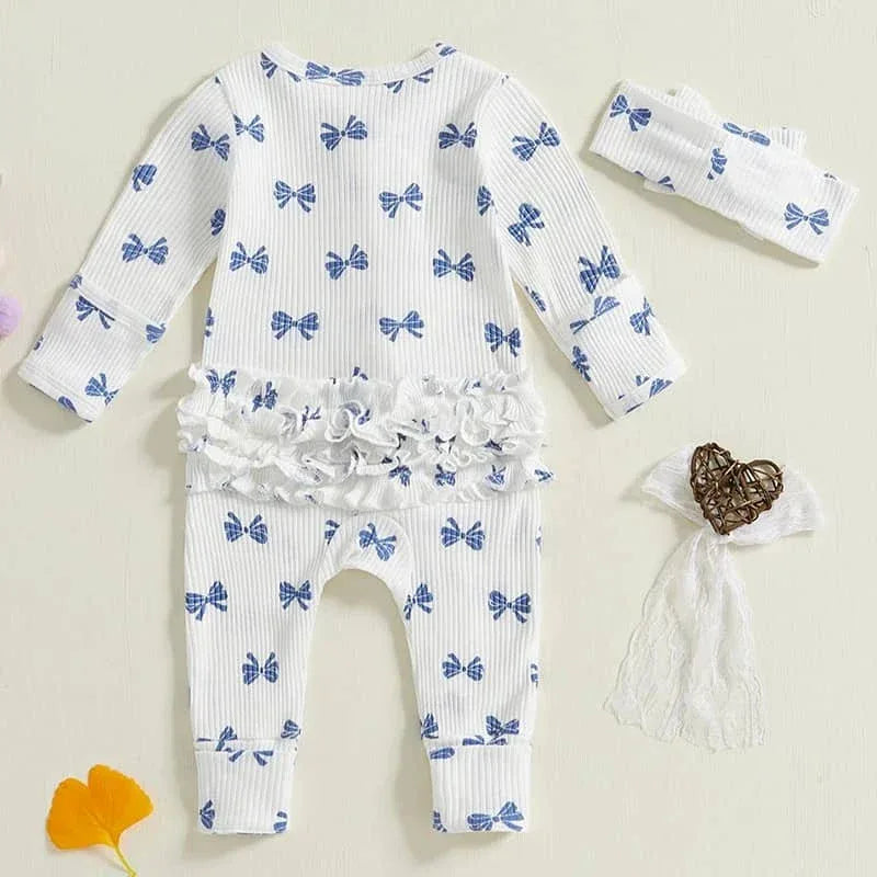 Discover the charming Bow-tique Baby Romper Set, perfect for every season. This baby romper set with bows gives your little one a soft, cozy feel with three premium cotton rompers. Each romper features a unique print and comes with a matching head bow, creating sweet outfits for any occasion.