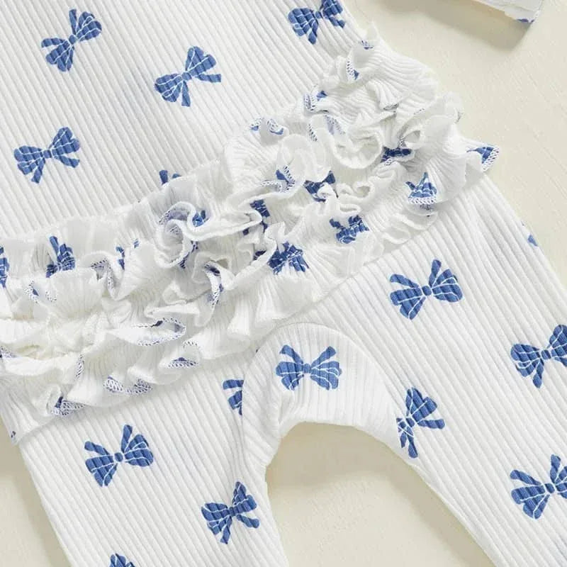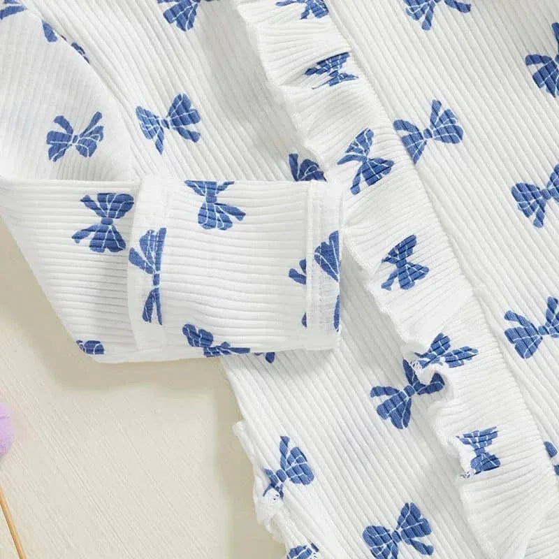 Elevate your child’s wardrobe with this baby romper set with bows. It’s suitable for everyday use or special events. The stretchy, breathable fabric grows with your baby, perfect for active little ones.