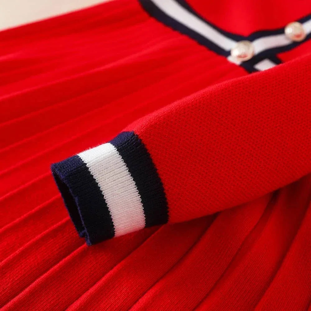 Parents will love the easy-care material. No need to worry about fussy washing routines or high-maintenance fabrics. This preppy red knit dress for girls is durable and retains its bright color after multiple washes. The dress looks fresh for every outing.