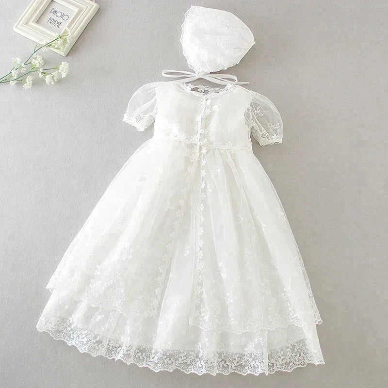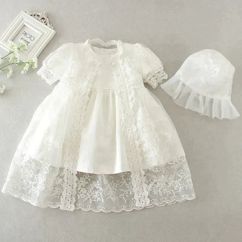 Introducing the "Eva" Baptism Christening Special Occasion Dress, a stunning choice for your little one's cherished milestones. Crafted from a premium cotton-blend fabric, this dress is designed for comfort and elegance, ensuring your baby looks adorable while feeling free to move and play.