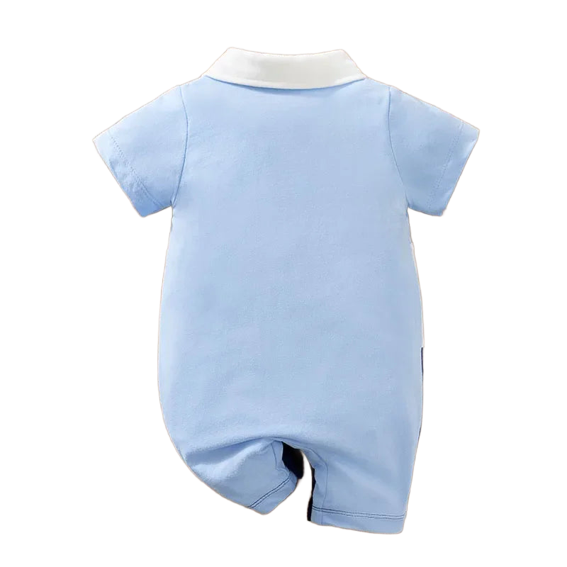 This romper comes in delightful shades of baby blue, medium blue, and classic white, ideal for spring and summer outings. The classic polo styling features a turn-down collar that adds a touch of sophistication to playtime. Plus, it includes front buttons for easy dressing—because who has time for a wrestling match when you're getting ready?