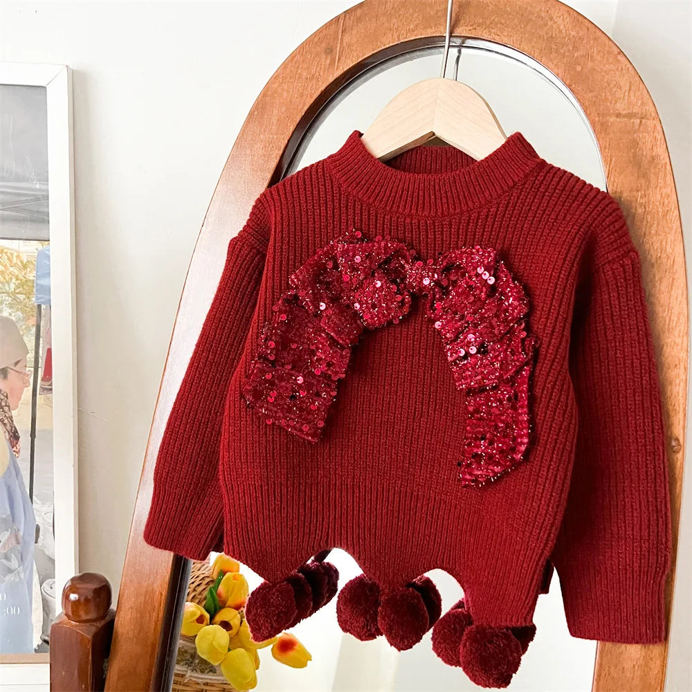 Meet the "Arlana" Shimmer Sweater and Pant Set—a dazzling two-piece collection that transforms any occasion into a celebration of style! This enchanting ensemble pairs a soft pullover sweater with black knit bell-bottom pants, both featuring shimmering bows that add just the right amount of sparkle and pizzazz to your little one's wardrobe.