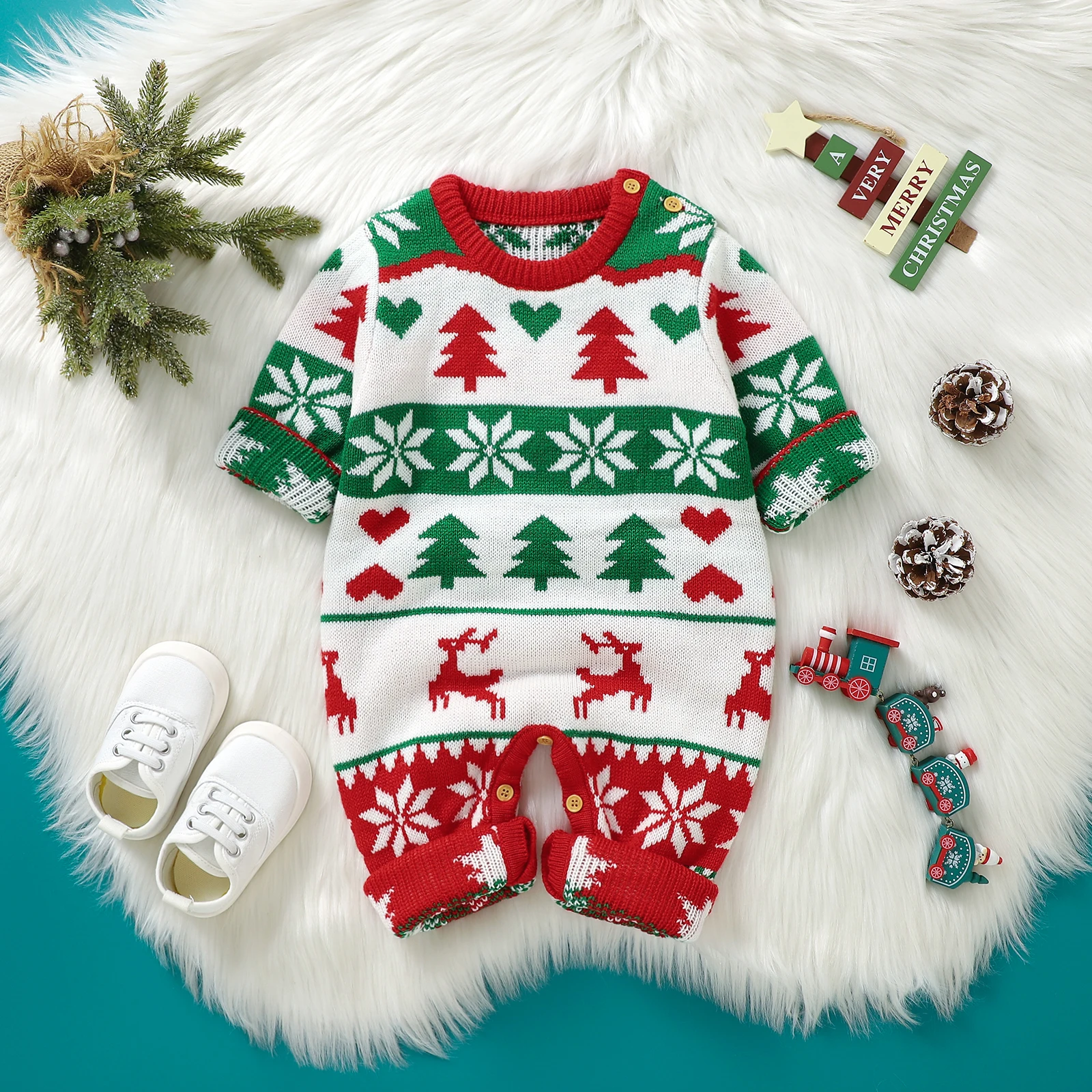 Introducing "Snow Kisses" – the ultimate cozy companion for your little one's chilly-weather adventures! Crafted from a durable polyester and acrylic blend, this knitted long-sleeve romper delivers softness and warmth without the bulk. The classic round neckline and thoughtfully designed silhouette work beautifully for both boys and girls, making it a versatile wardrobe essential.