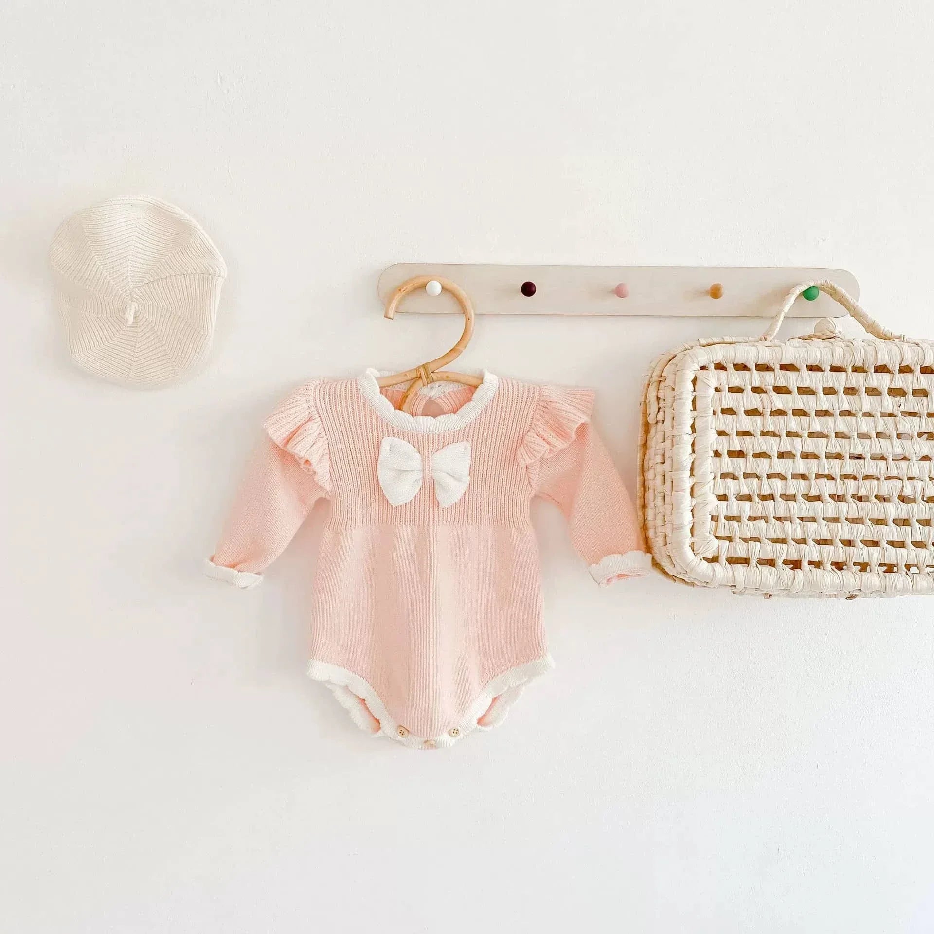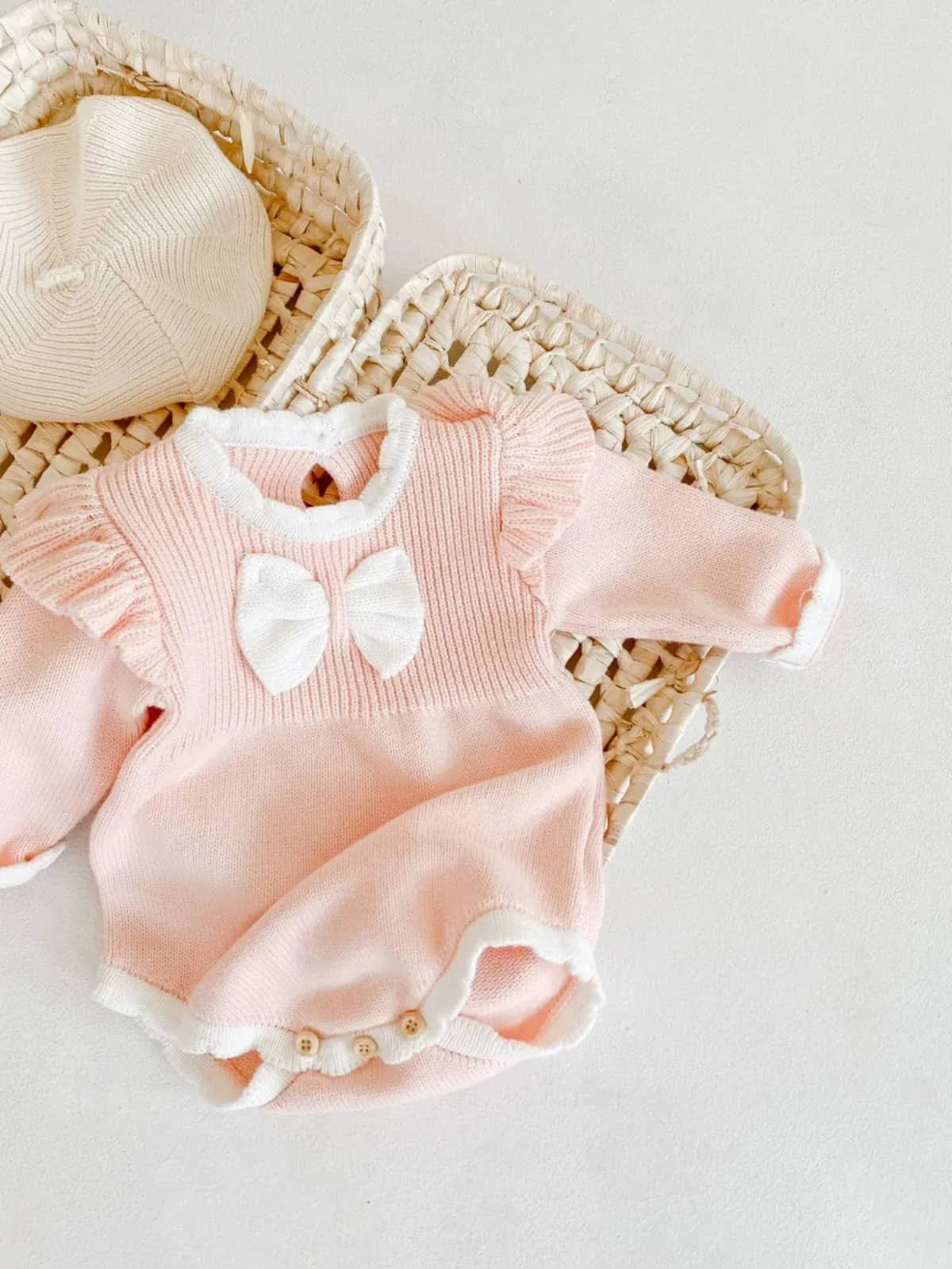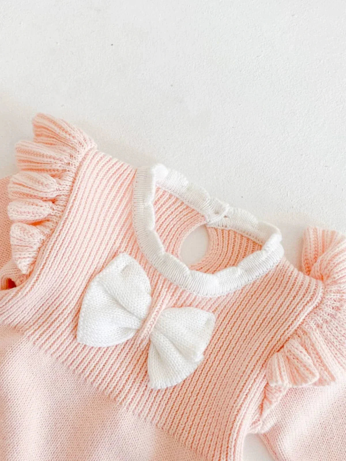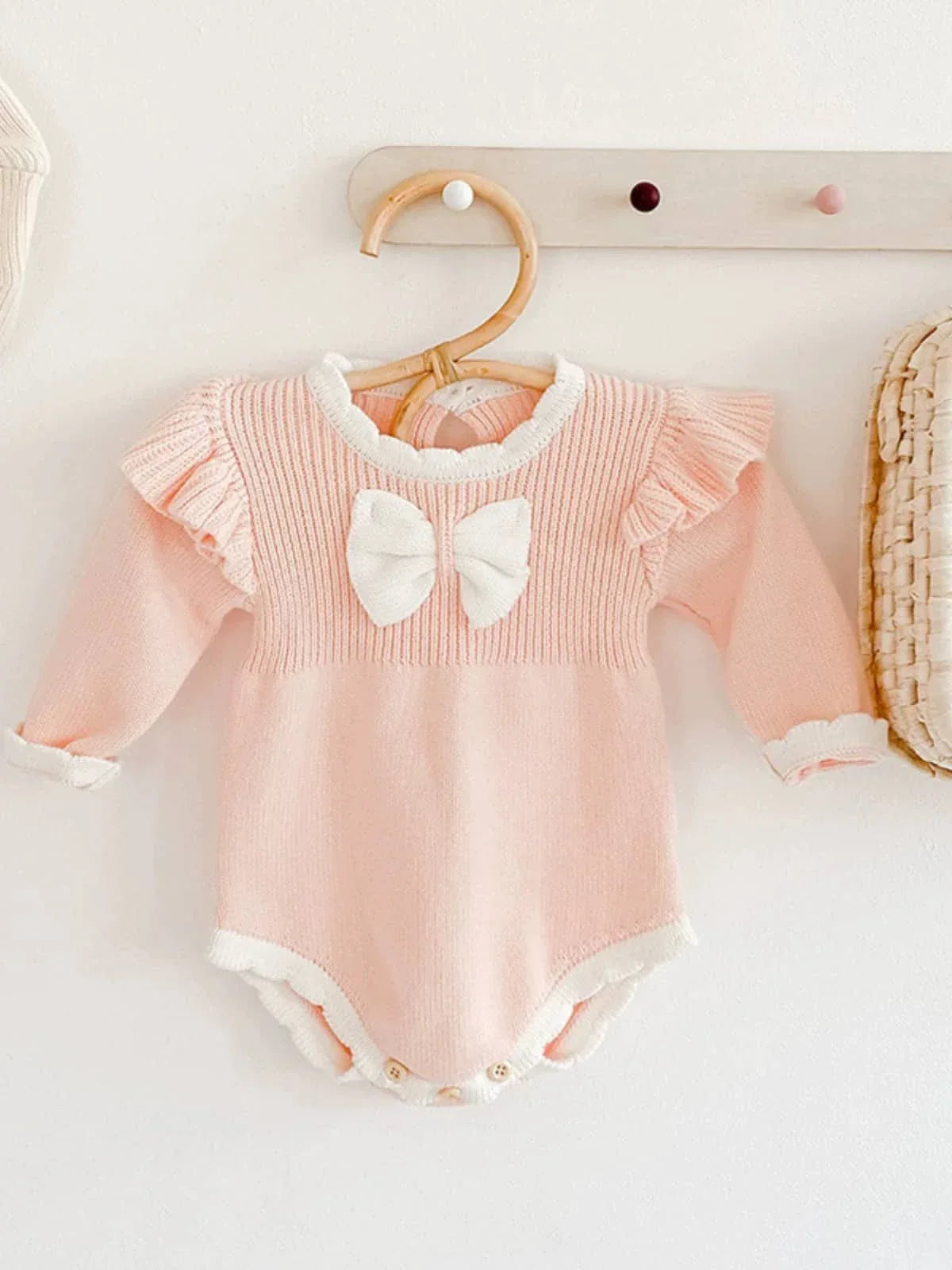 Pink Frilly Baby Bubble Romper with Bow Detail