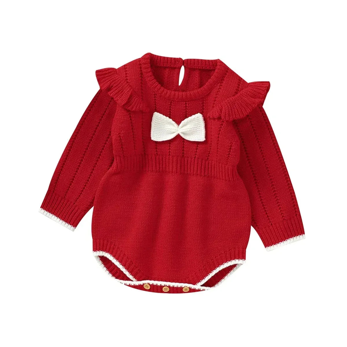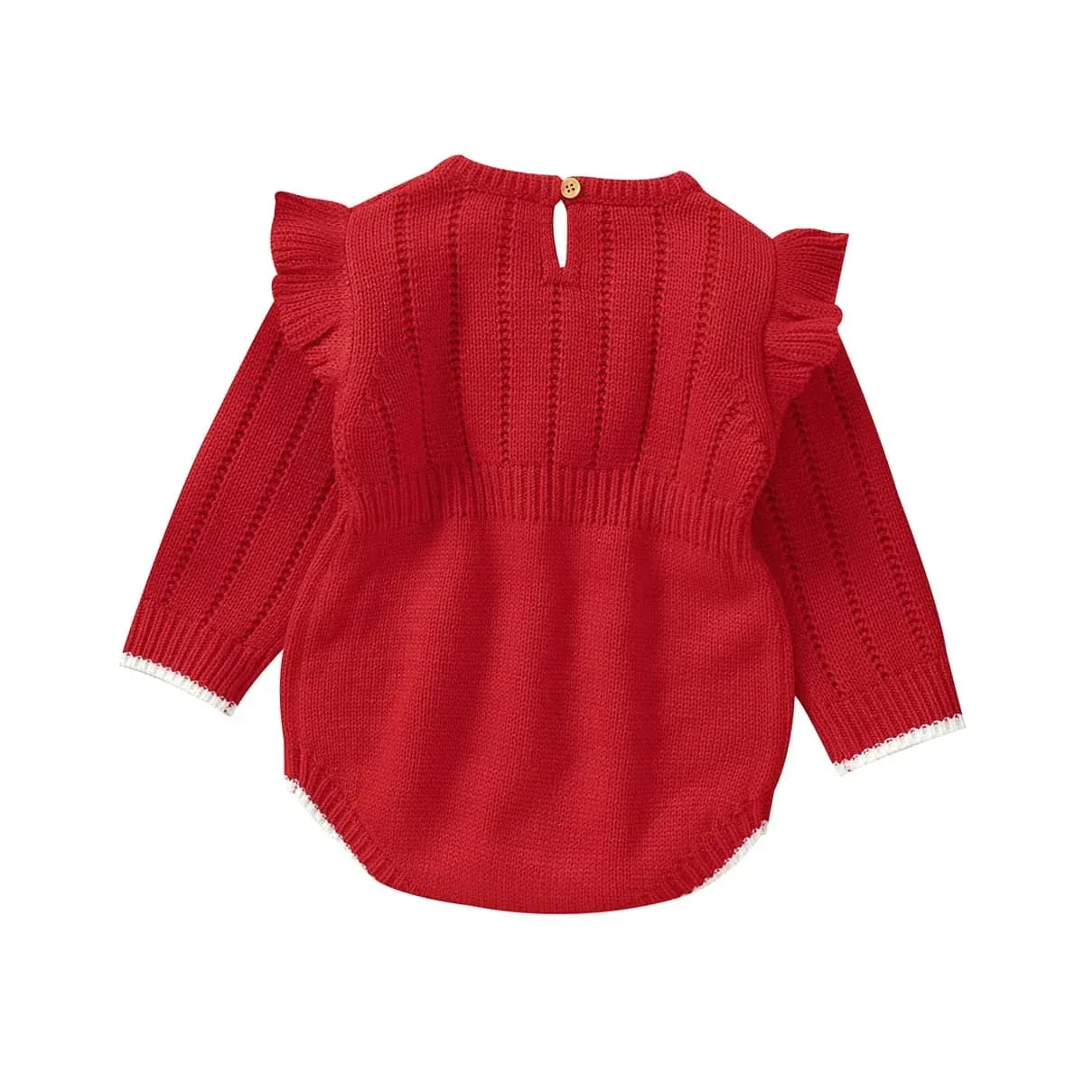 Dress your little one in charm with this red holiday baby bubble romper. The soft, knitted fabric feels gentle against delicate skin. The long sleeves keep babies warm on crisp days. The bright red color looks festive and fun for holiday gatherings or family photos.