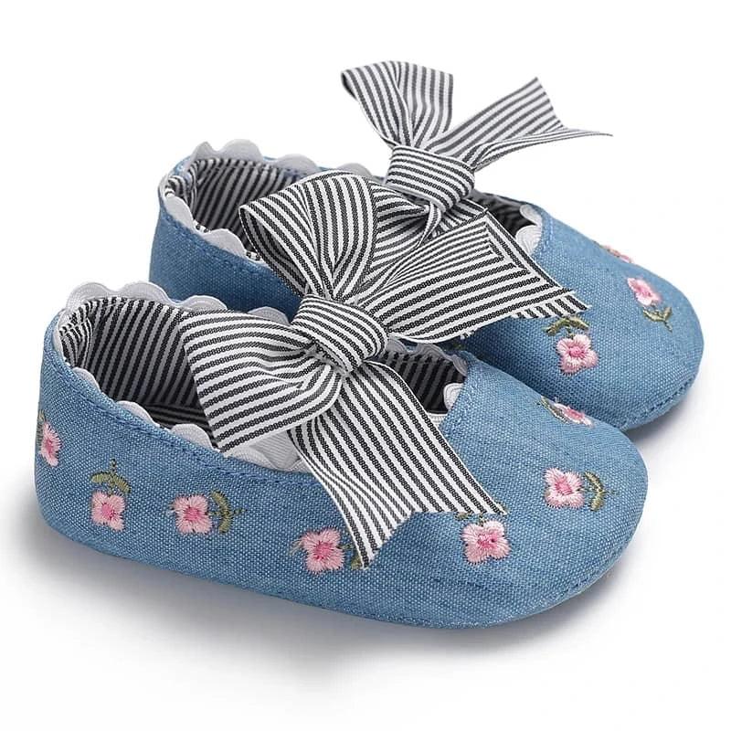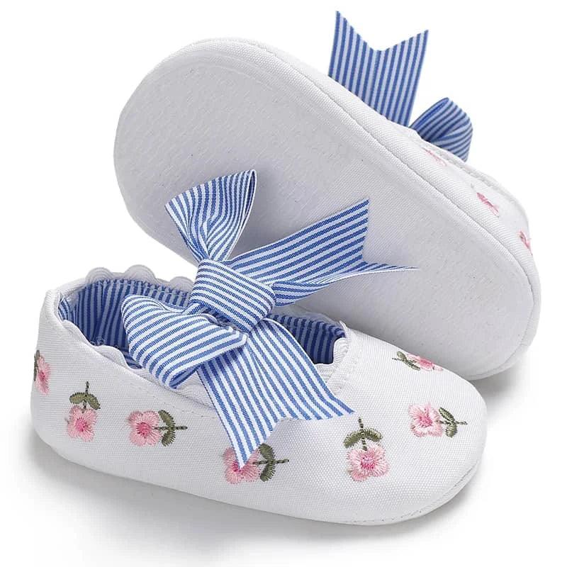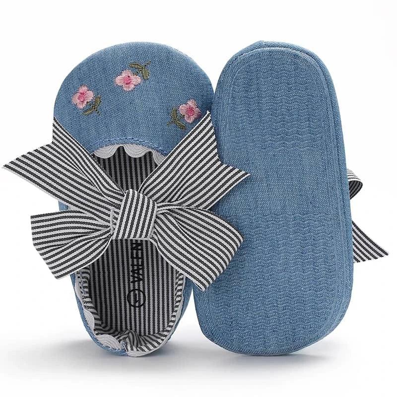 Soft Sole Baby Shoes with Floral Design and Bow