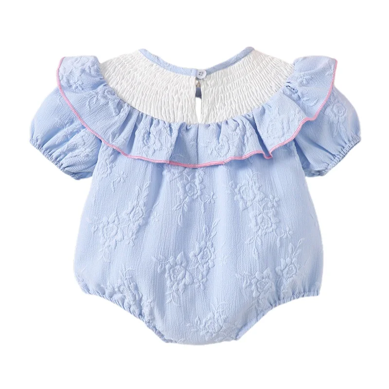 Designed for newborns to 24 months, this dress ensures a perfect fit true to size. The practical snaps at the legs make diaper changes a breeze, allowing parents to focus on what really matters—capturing precious moments with their little ones. Crafted from a blend of 65% cotton and 35% polyester, the dress offers easy-care, wrinkle-resistant qualities, making it ideal for all seasons—particularly during warm weather!