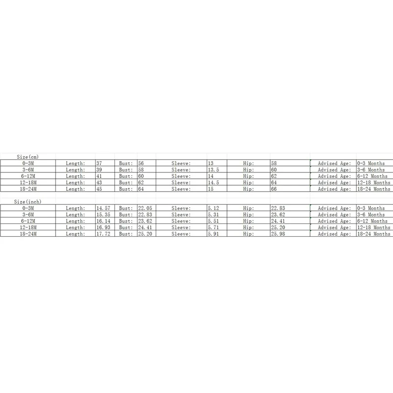 0-3M Length: 14.57 Bust: 22.05 Sleeve: 5.12 Hip: 22.83 Advised Age: 0-3 Months