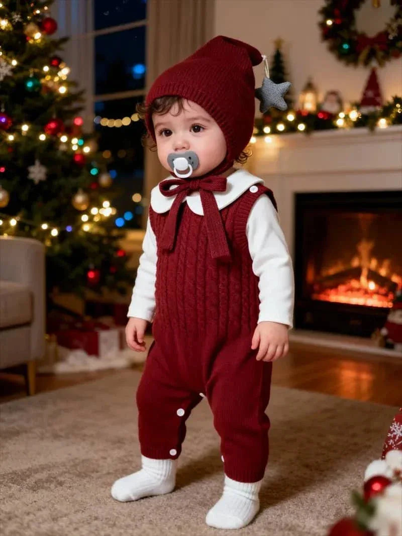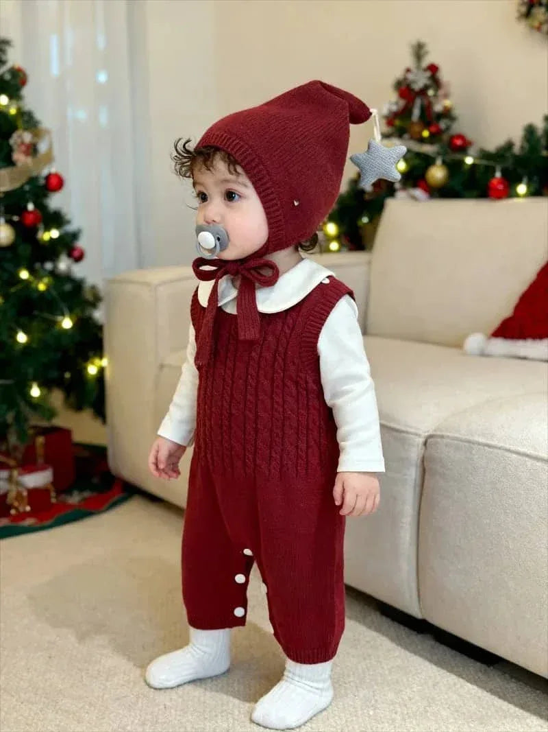 Parents love how this baby knit romper set stands out in family photos or on special occasions. The deep wine color looks charming in any setting. A matching hat completes the look, giving your baby a touch of timeless style. Each piece in the baby knit romper set holds up well to repeated washing.