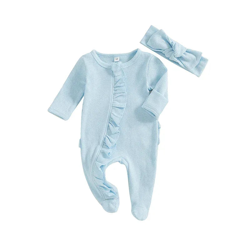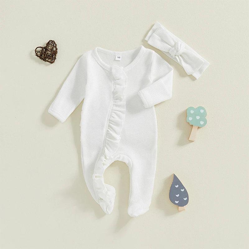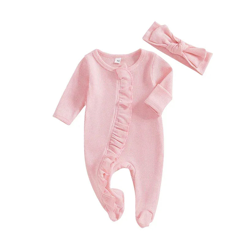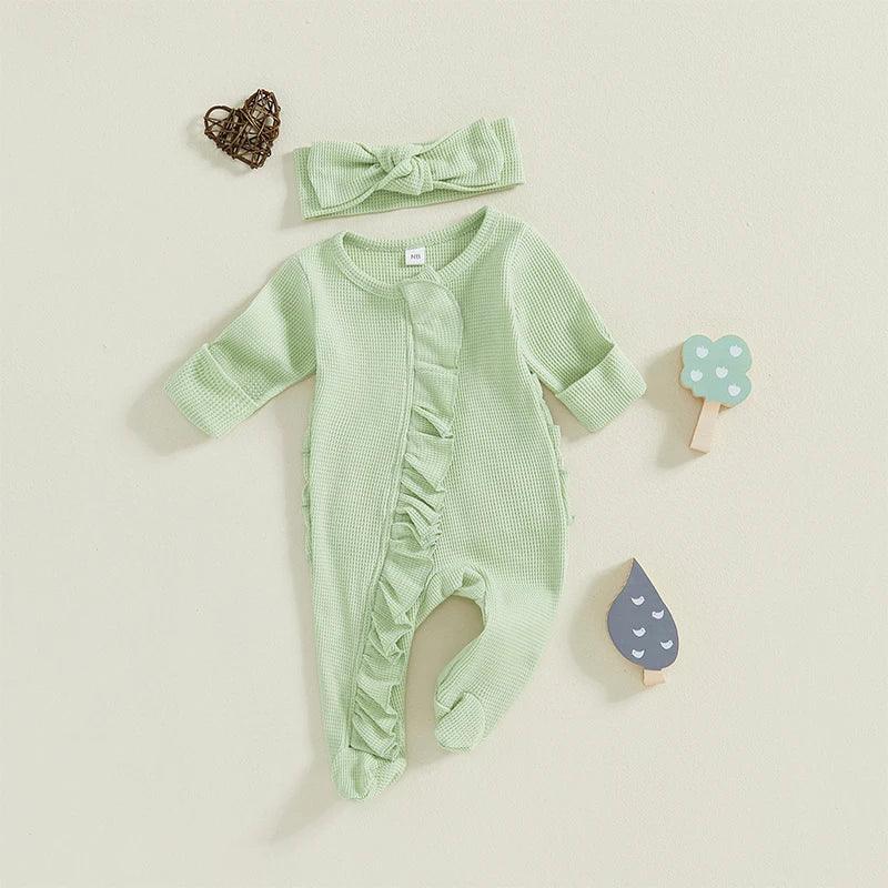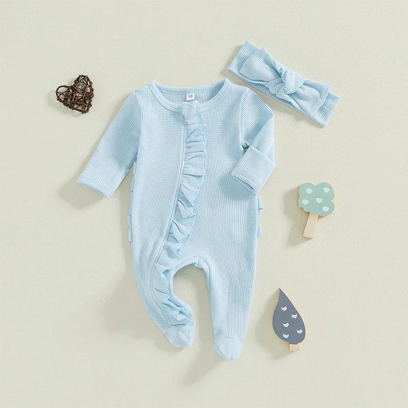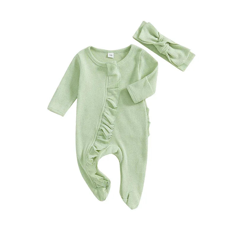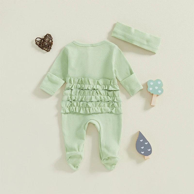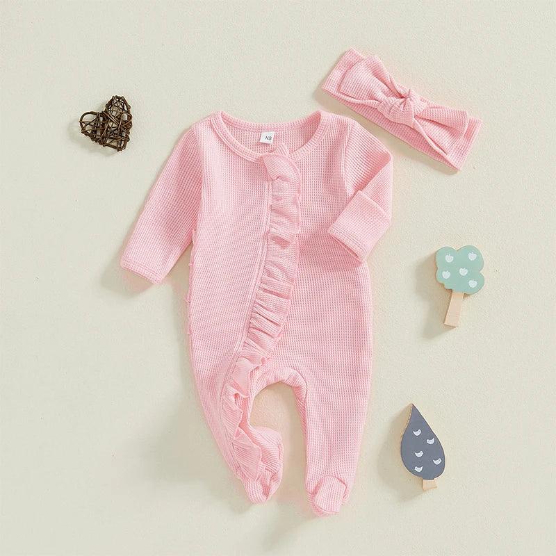 'Ruffled Pastels' Baby Romper With Head Bow - 4 Soft Colors
