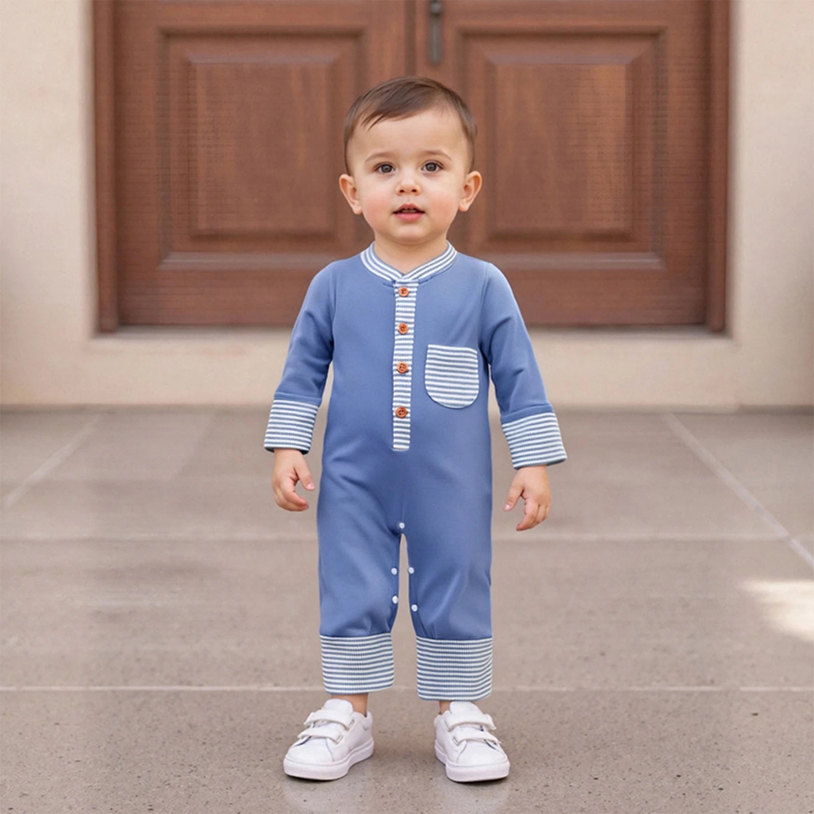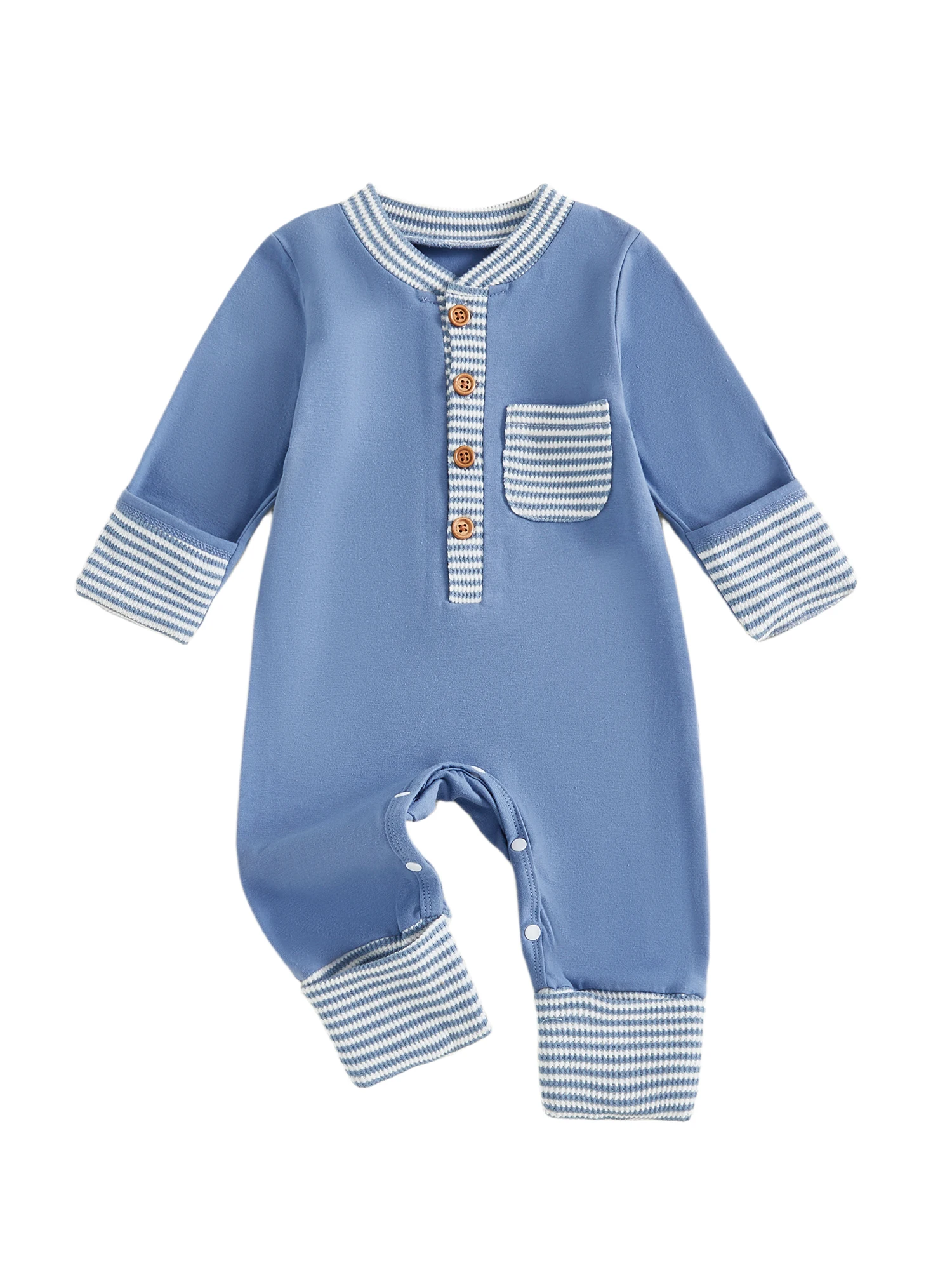 The Hudson Button-Down Stripe Romper brings a delightful twist to baby fashion with its three trendy collar options, perfect for newborns up to 9 months. Crafted from a cozy cotton blend, this romper keeps your little one comfy all day long. Snapped legs mean diaper changes are a breeze, so you can spend more time enjoying those adorable giggles. With a cute front pocket and playful strip patch details, it’s a charming outfit for boys or girls, any season. Whether it’s a baby shower, a family outing, or a cozy day at home, this romper adds a splash of style and fun. Don’t forget to peek at the size chart below to find just the right fit for your tiny trendsetter!