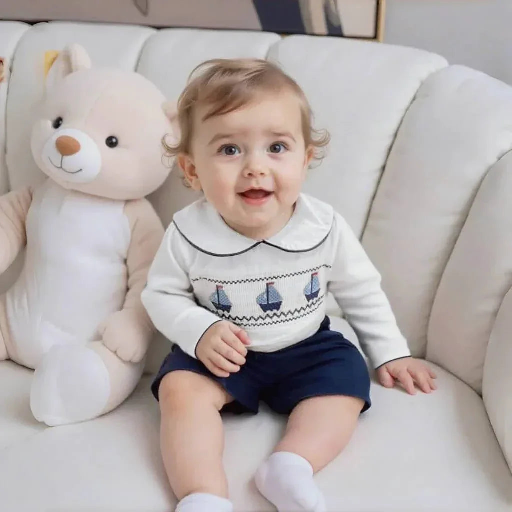 Nautical Smocked Romper for Baby Boys – The Palm Beach Baby