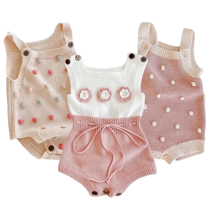 The stretchy knit fabric ensures a cozy and customized fit, allowing your little one to explore and move freely with ease. Whether for a fun day at the park or a festive family gathering, these baby knit rompers are an essential addition to your toddler's wardrobe.