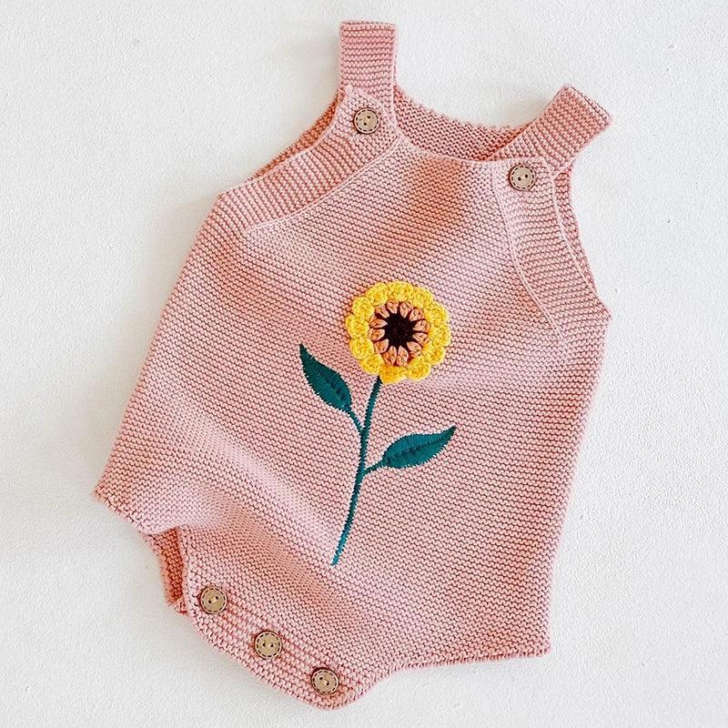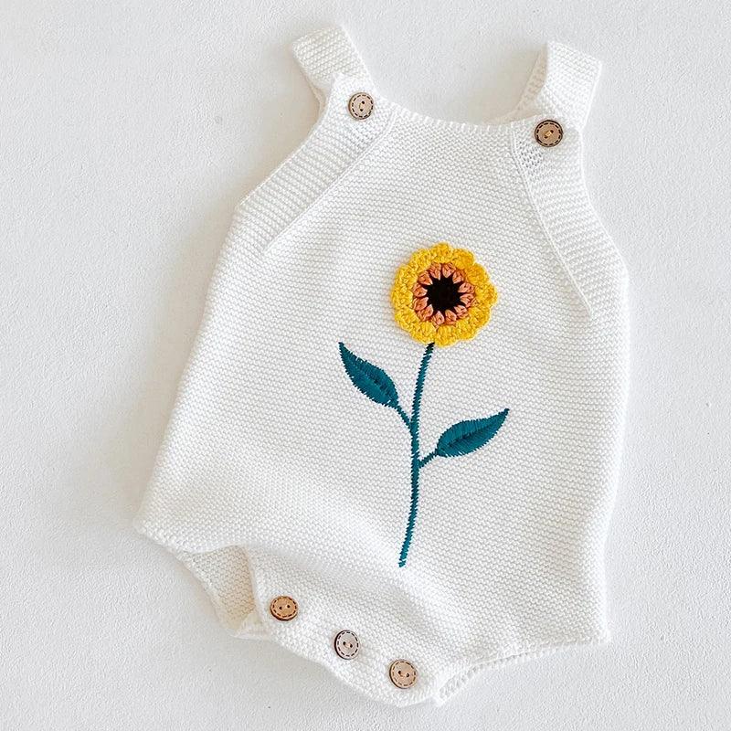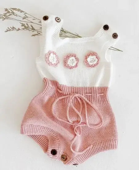 Soft Knit Baby Romper with Floral Detail - The Palm Beach Baby