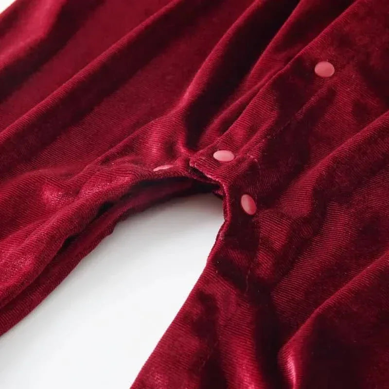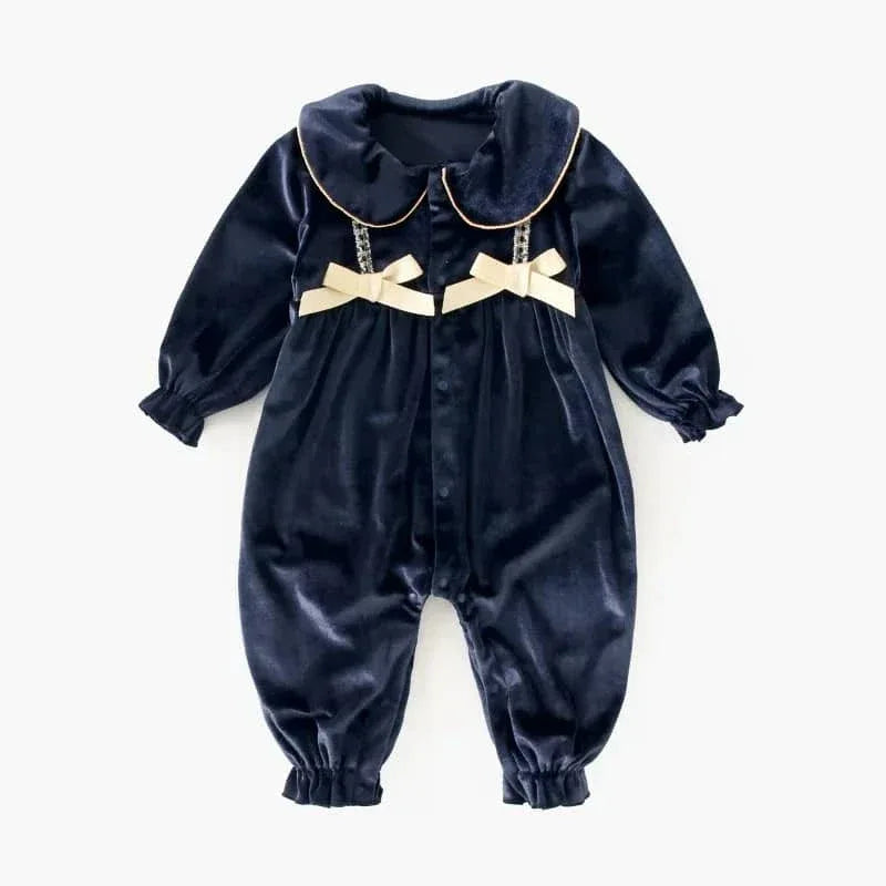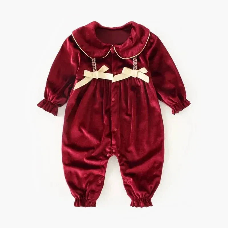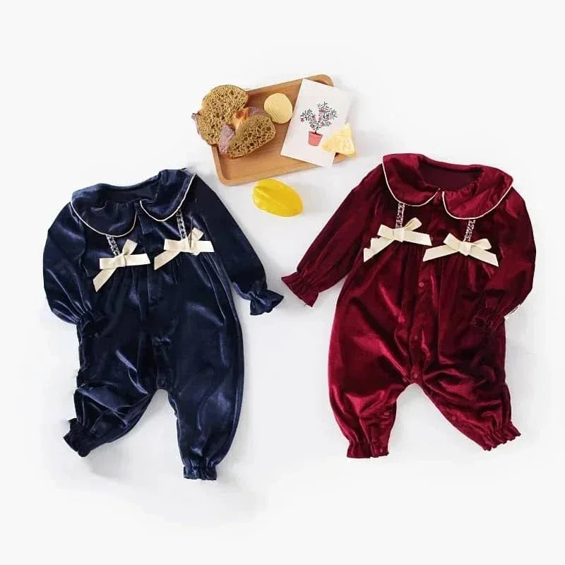 Velvet Baby Romper with Peter Pan Collar - Cozy & Cute