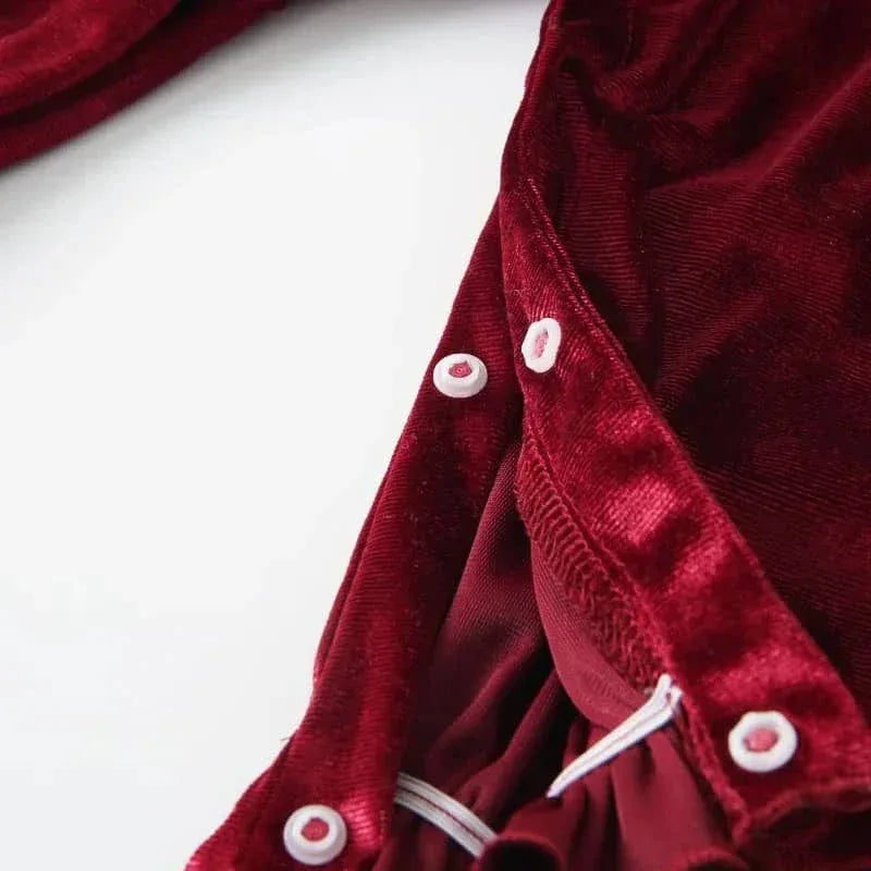 Give your little one a touch of classic charm with this velvet baby romper with peter pan collar. The soft velvet fabric feels gentle on delicate skin. Long sleeves offer extra warmth. The timeless Peter Pan collar adds a sweet, vintage-inspired detail that never goes out of style.