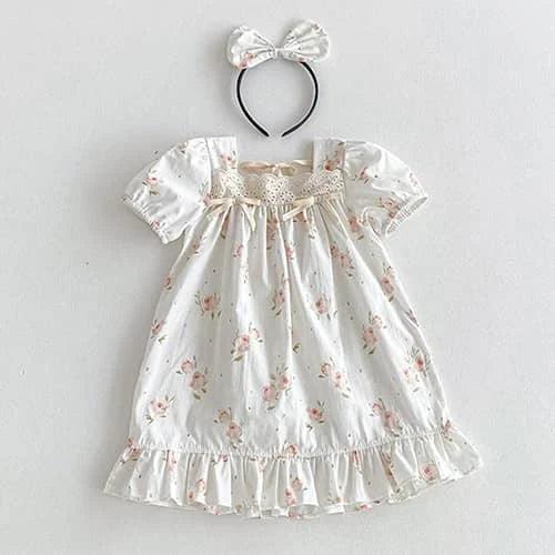 This vintage baby girl outfit offers comfort for infants, toddlers, and kids. Short sleeves and a breezy design allow for easy movement. Your little one stays cool during outings or playtime. Each dress comes with a matching bow headband to complete the look.