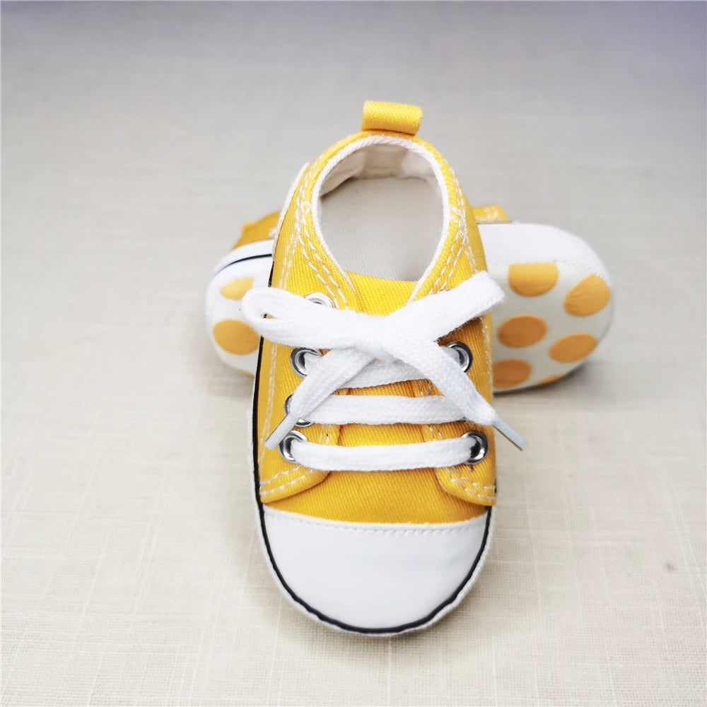 Your baby's first steps deserve the best, and our Canvas Lace-up Baby First Walkers in vibrant Florida Sunshine Yellow offer the perfect blend of style and functionality. Designed for little ones who are just starting to explore the world, these adorable first walkers feature a soft canvas upper that allows tiny feet to breathe while keeping them comfy and protected.