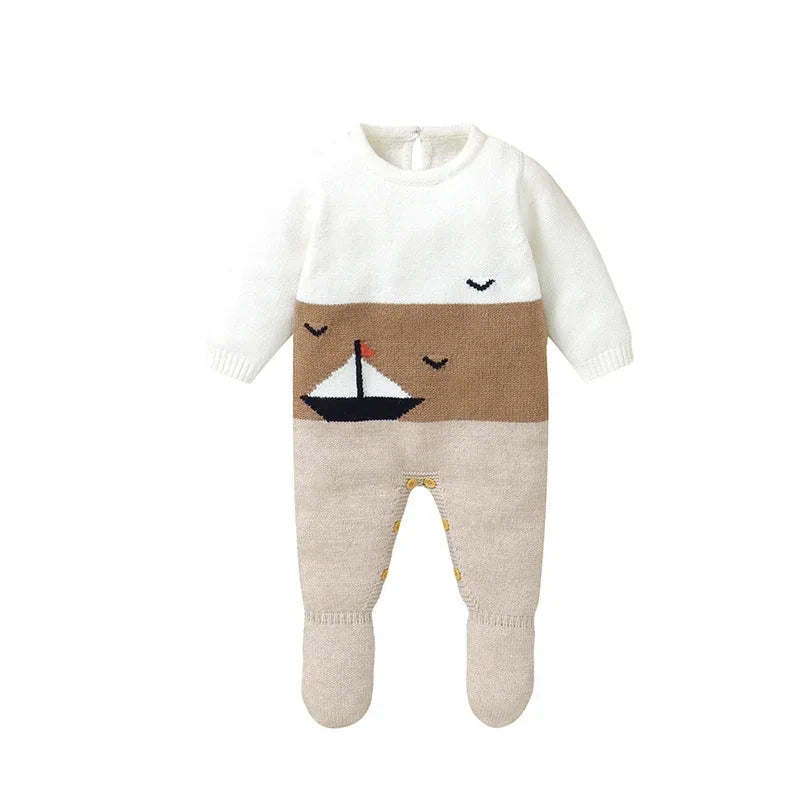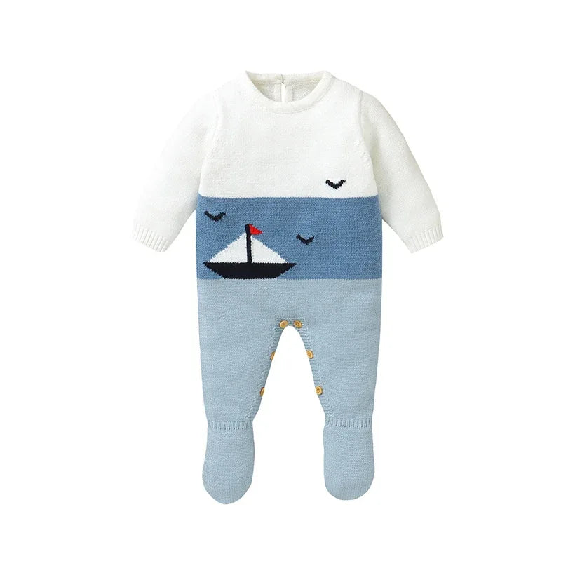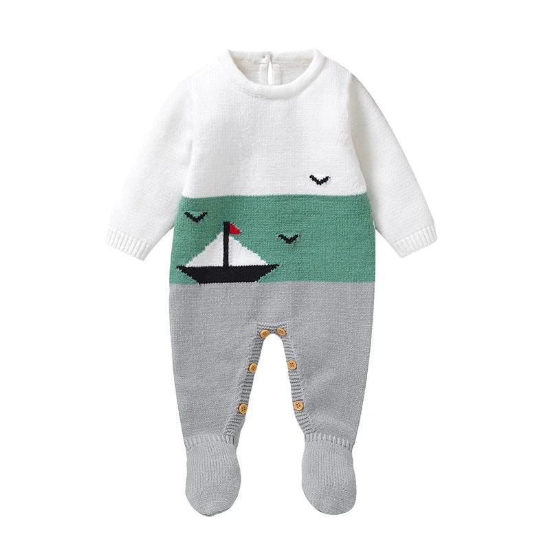 Sailboat Knit Romper for Babies with Cozy Full Coverage