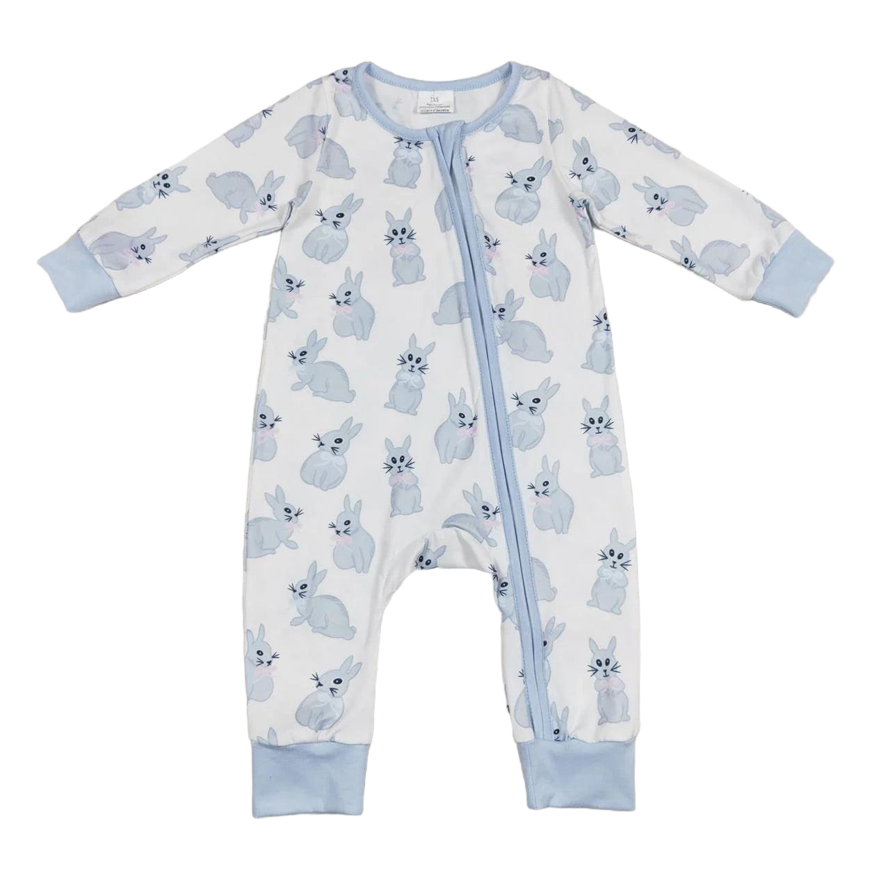 'Blue Bunnies Zippered Spring Romper For Babies & Toddlers