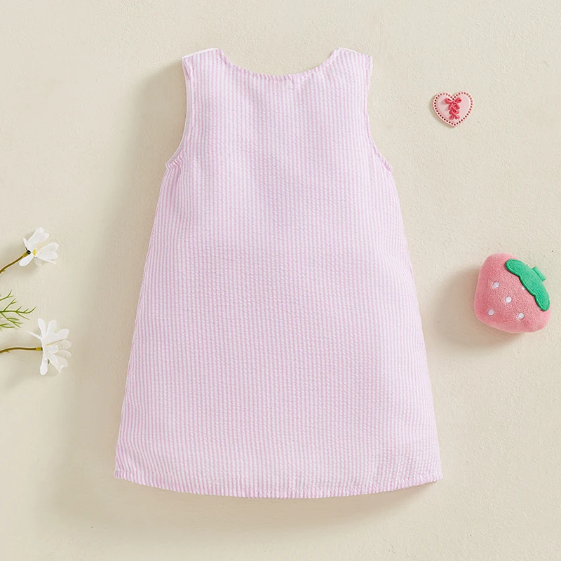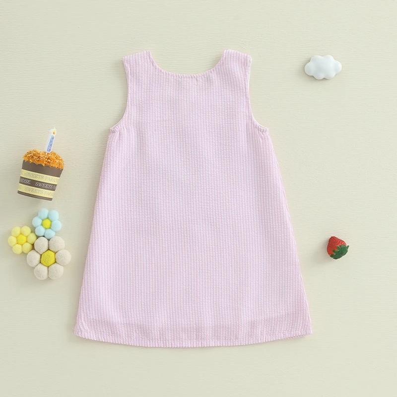 Crafted from a soft, wrinkle-resistant material, this dress ensures ultimate comfort for all-day wear. The adorable princess pink color is perfect for every little girl and adds a touch of sweetness to any occasion. The fully lined A-Line design includes a playful striped pattern, providing a whimsical flair that makes this dress irresistible.