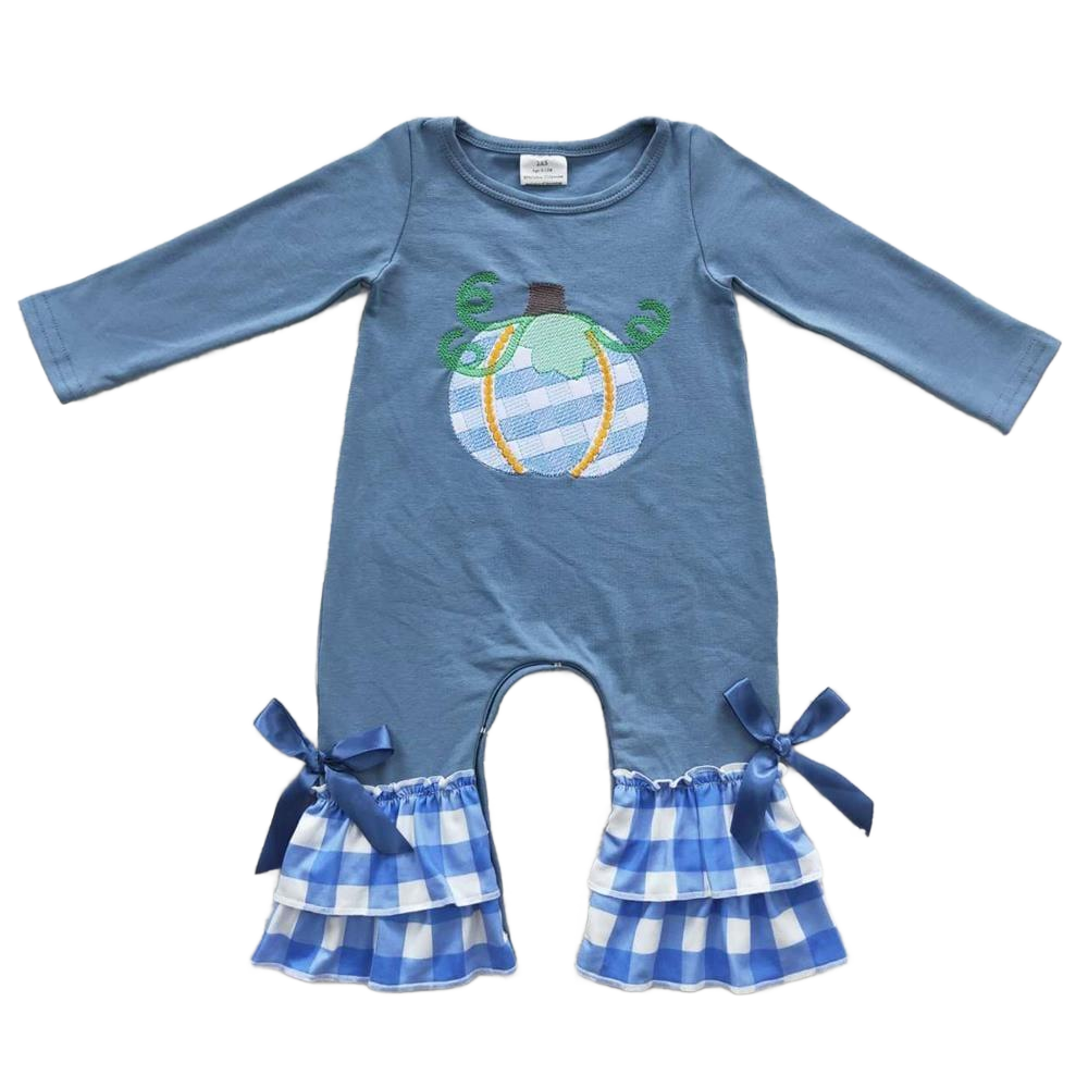 "My Little Blue Pumpkin" Baby Romper - Fun Frilly Plaid