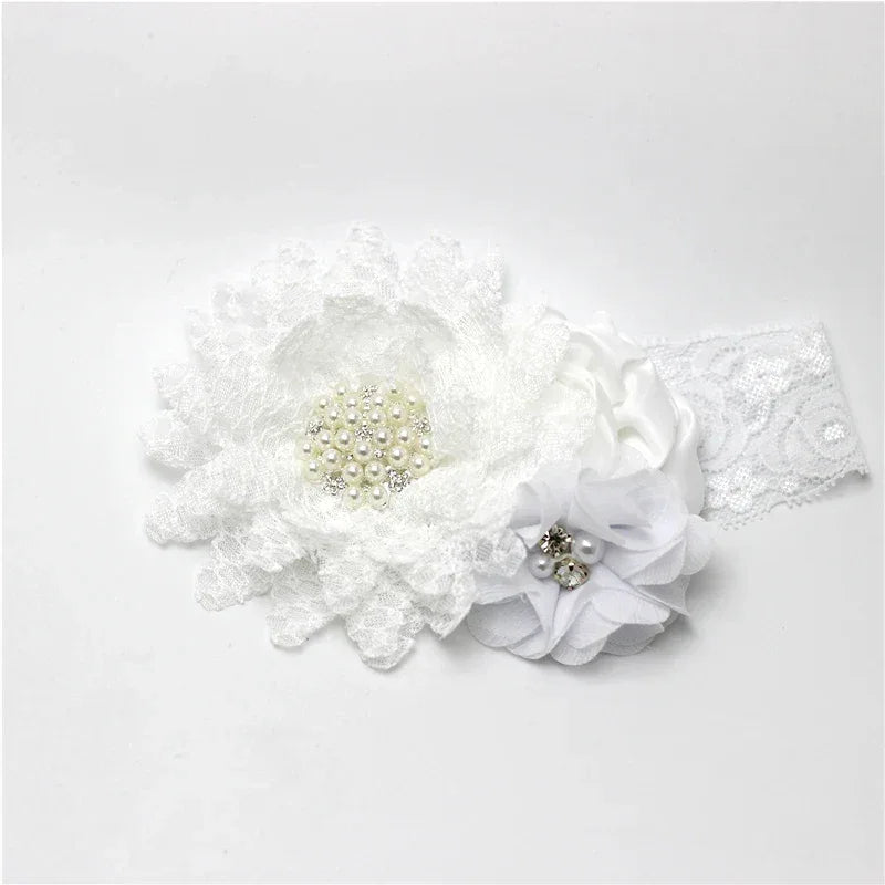 Beaded chiffon baby hair accessories match a range of outfits. Pair with special occasion dresses, rompers, or casual play clothes. The flower design with classic white tones works perfectly for photo shoots, birthdays, or events. It also makes a thoughtful shower gift for expecting parents.