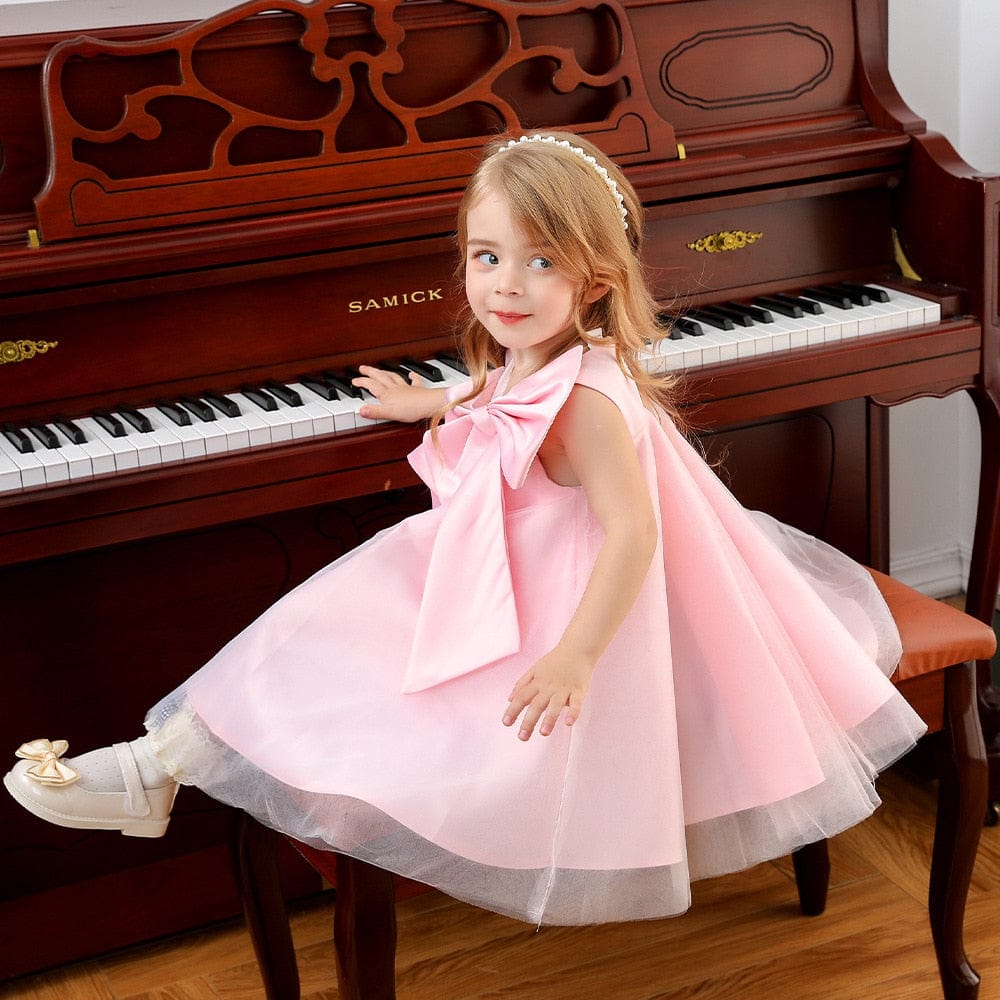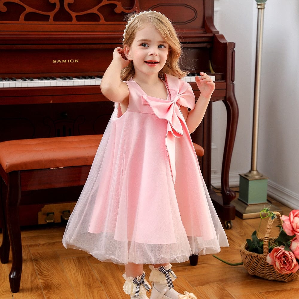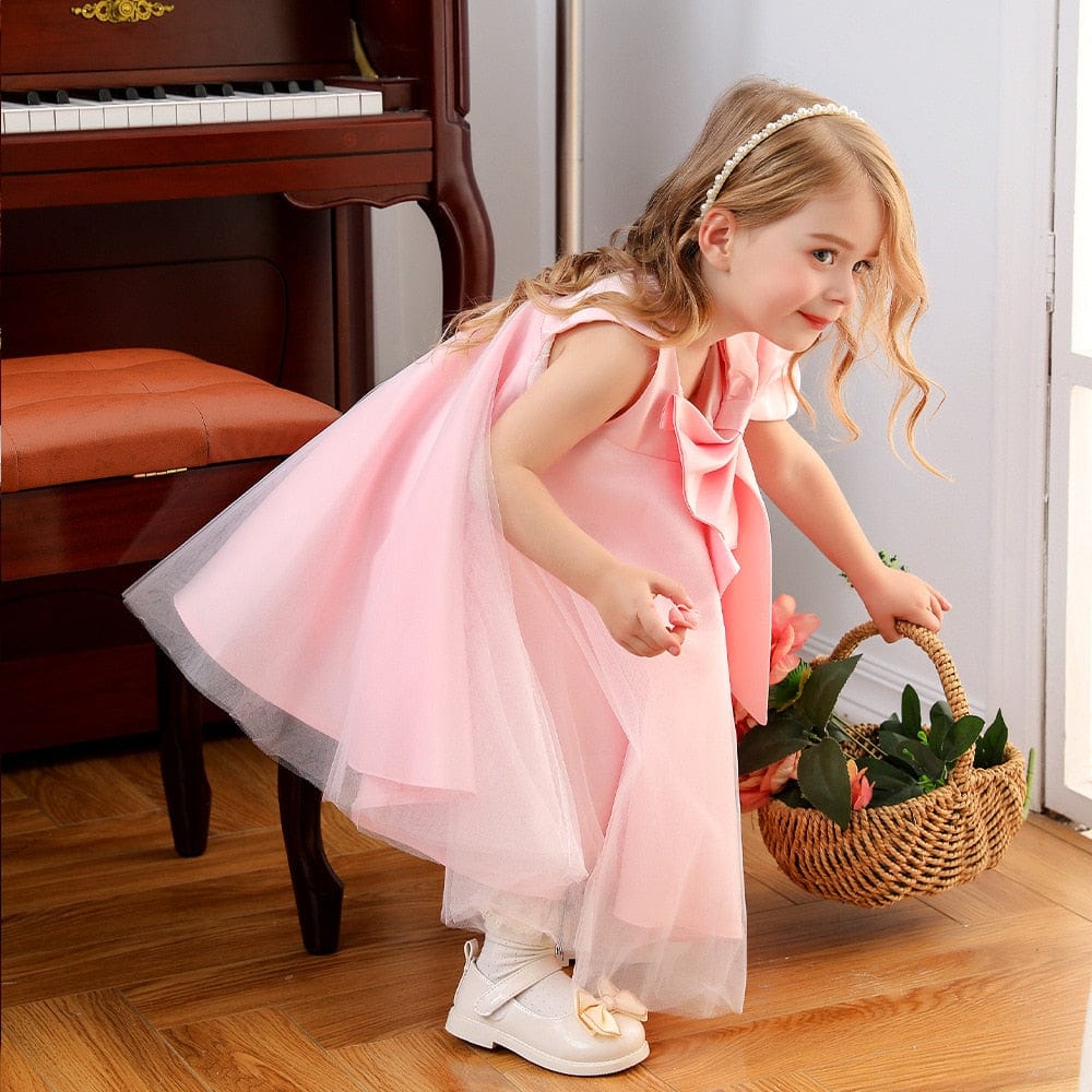 Big Bow Sari Dress for Girls - Pink Elegant Kids Dress