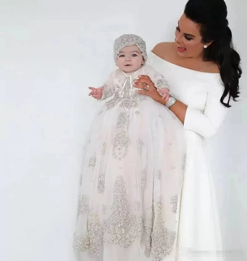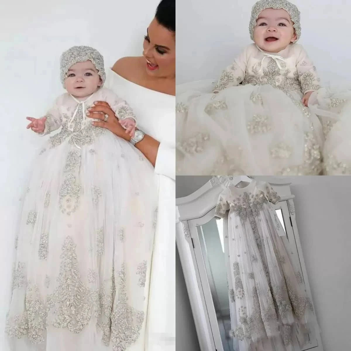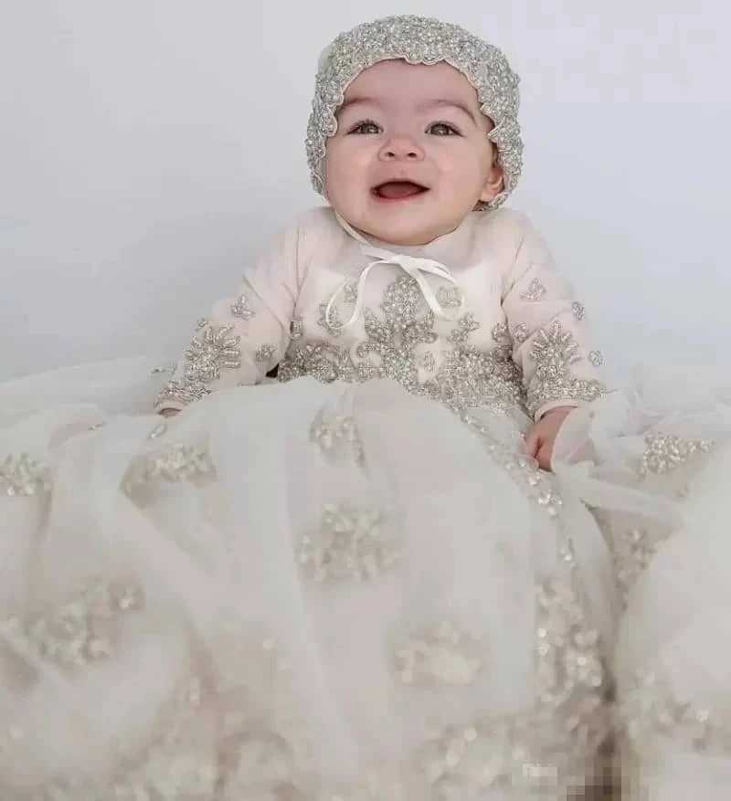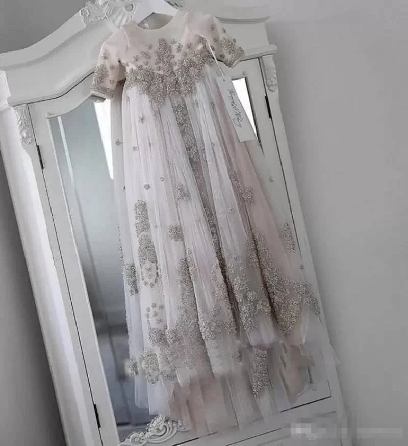 Elegant Baby Baptism Gown with Beaded Embellishments