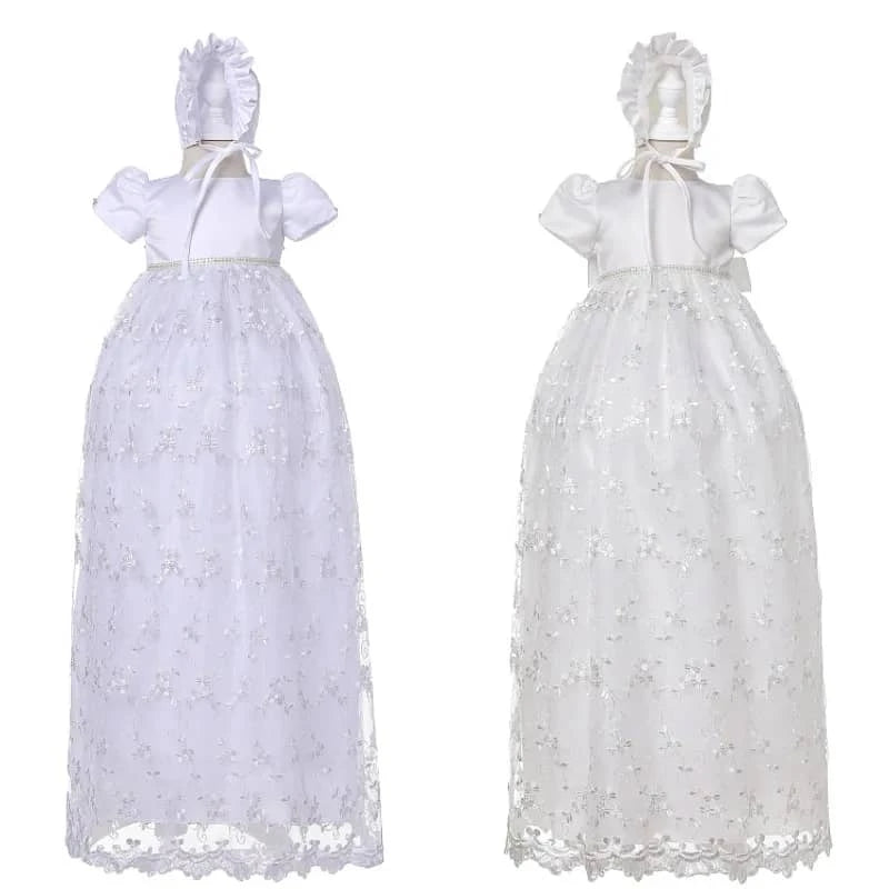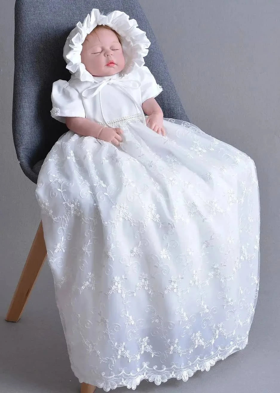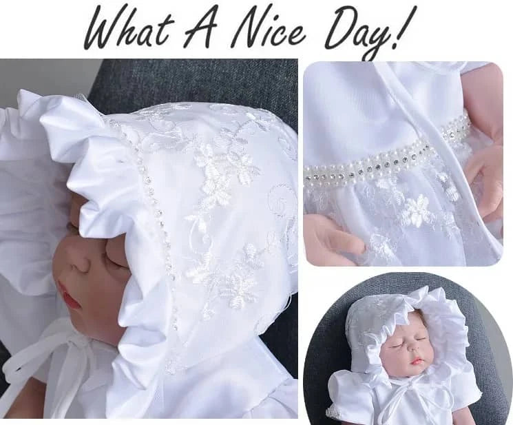 Give your baby's special day an unforgettable touch with this hand-embroidered christening dress set. Each dress is carefully crafted with delicate lace and premium fabric. The unique lacework creates a beautiful look that stands out in photos and family gatherings. Your little one will feel comfortable and look radiant from the ceremony to the celebration.
