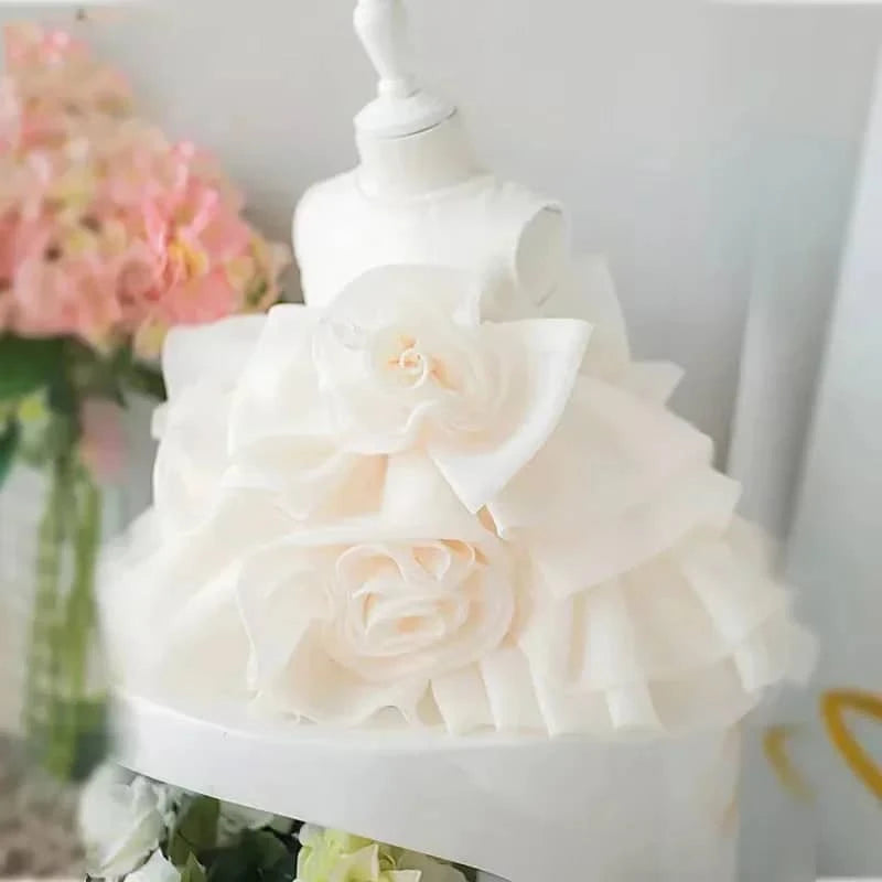 Luxury Flower Girl Dress with 3D Floral Design