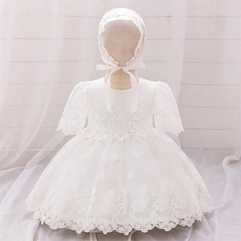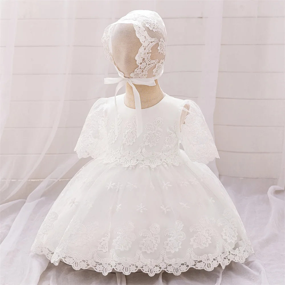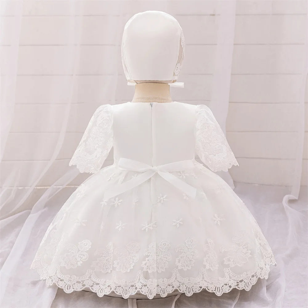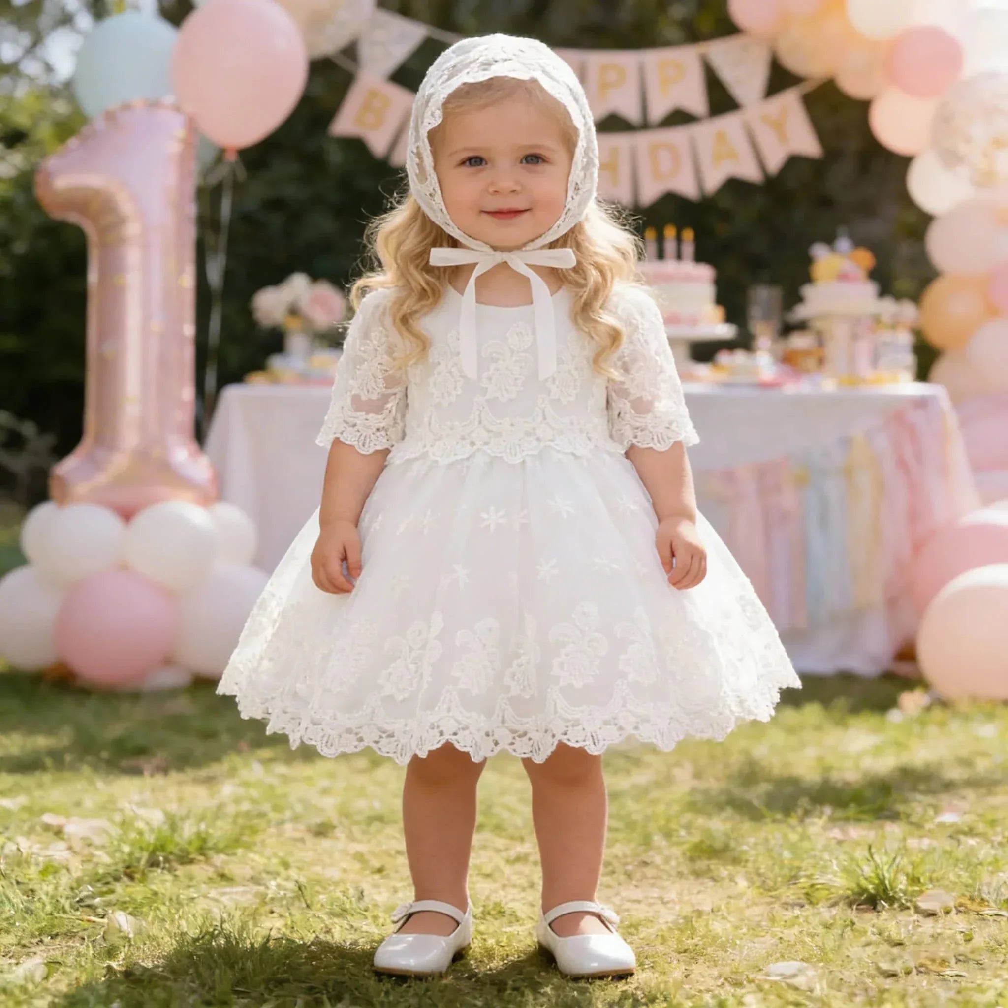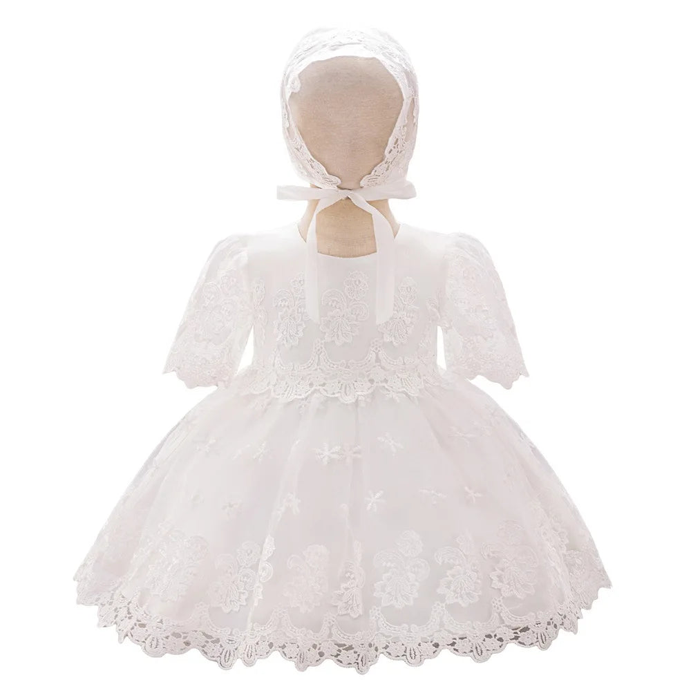 Emma-Marie Lace Baby Dress with Matching Hat for Special Occasion