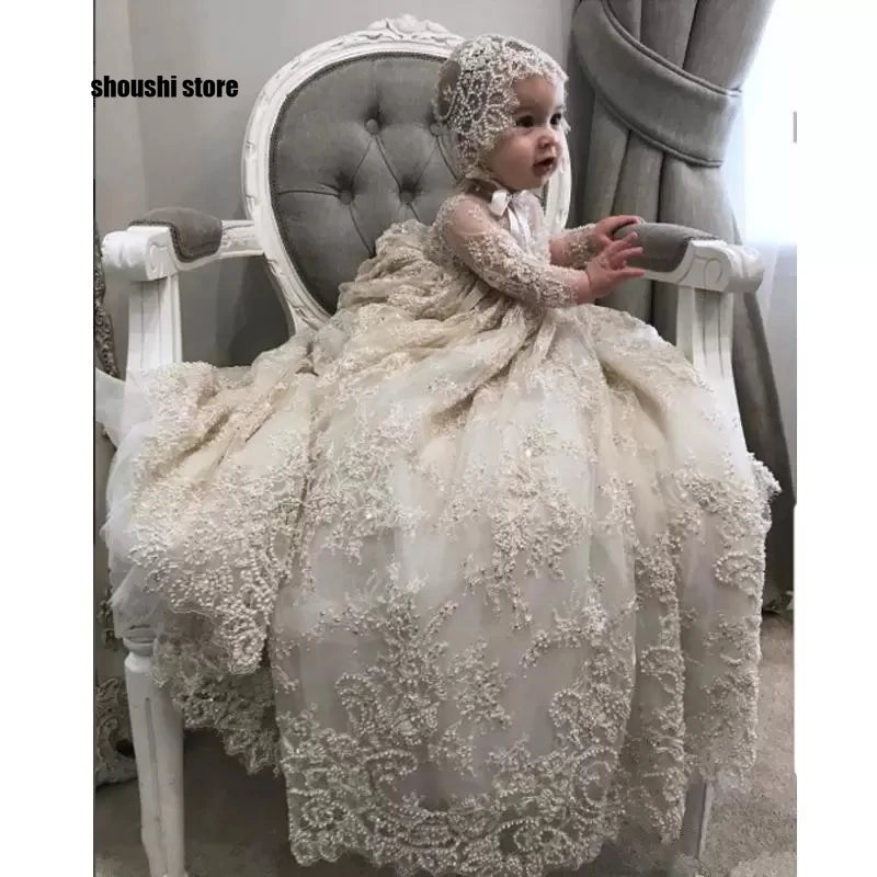Available in multiple colors and fully customizable sizing, the "Pasquela" adapts perfectly to your little one's measurements and your vision. Ideal for christenings, baptisms, flower girl occasions, formal celebrations, and milestone portraits, this gown transcends a single event—it becomes a treasured keepsake passed through generations.