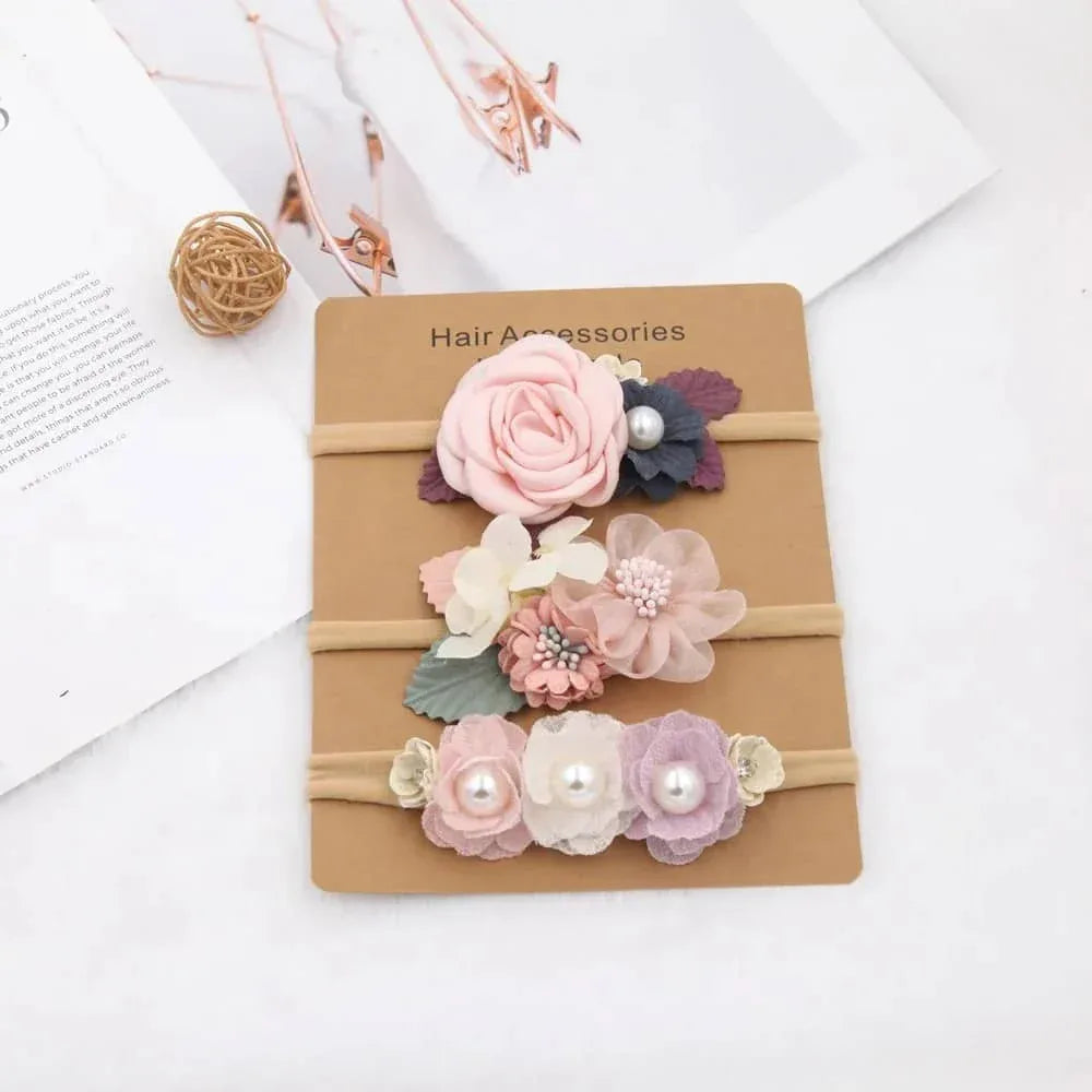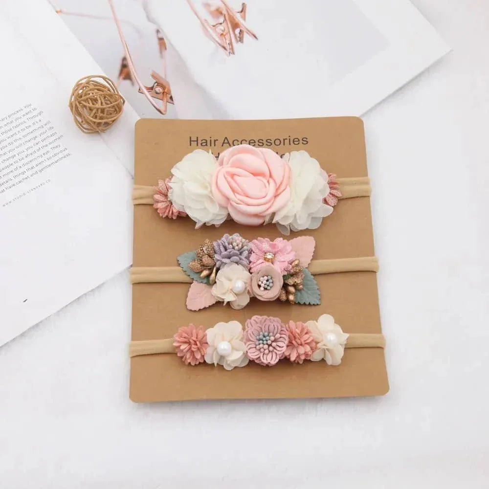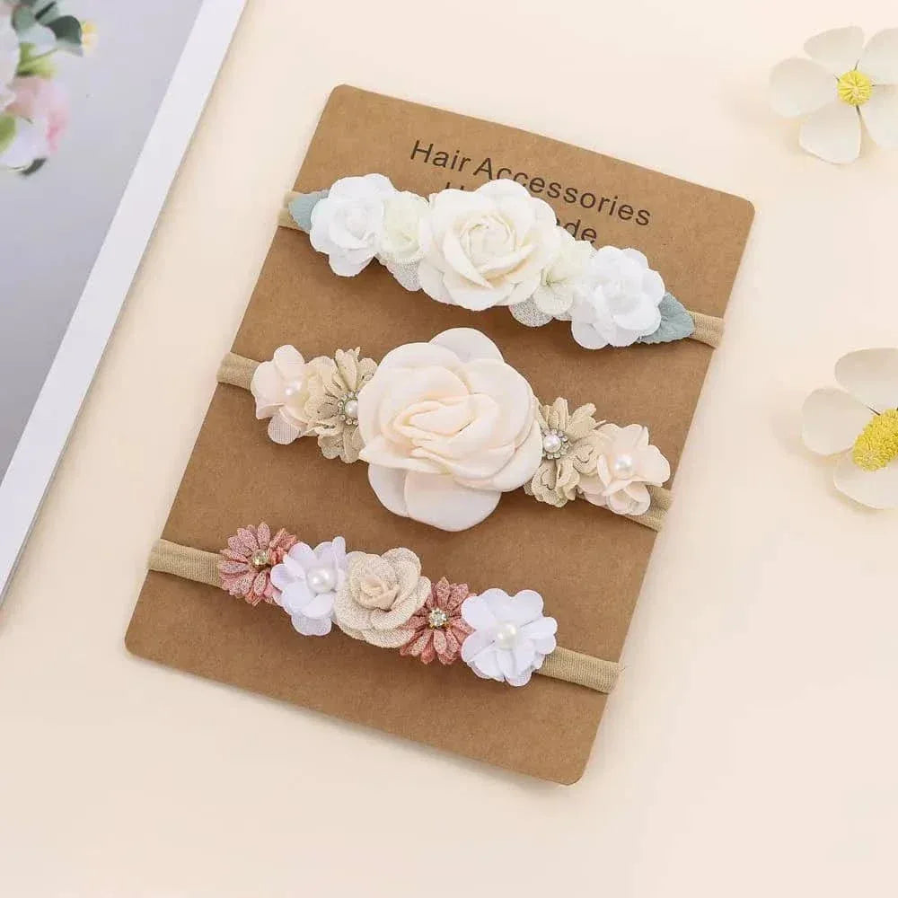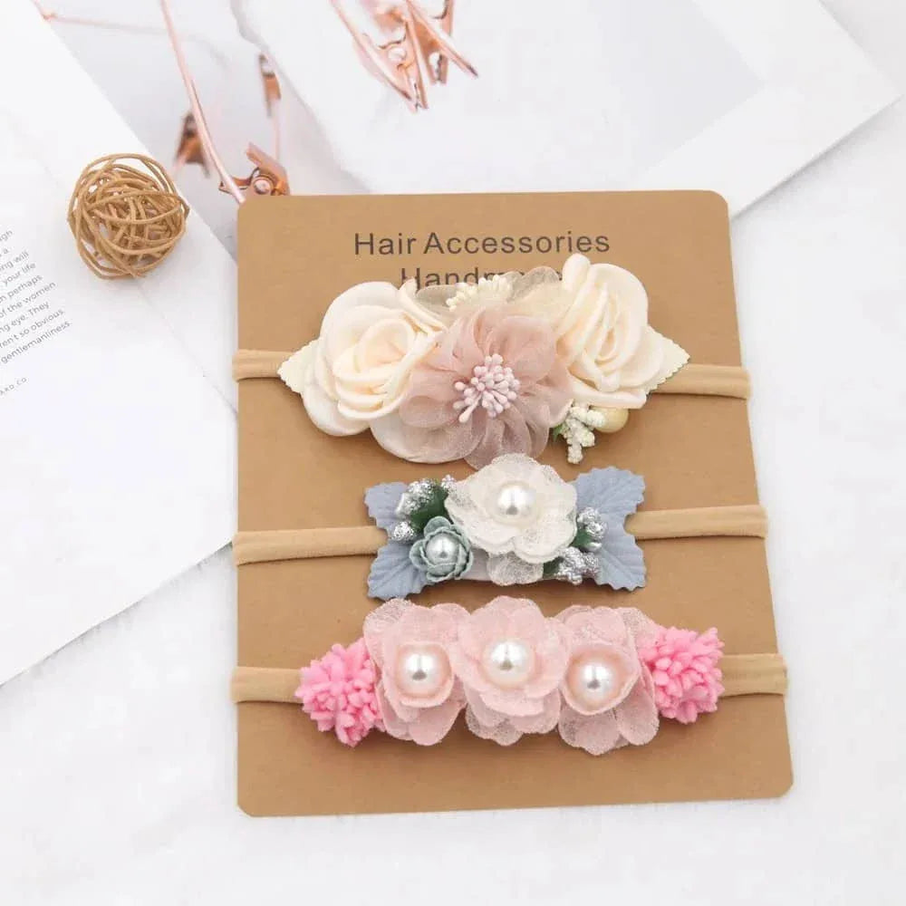 Beaded Baby Headband Set with Floral Design - Soft & Stylish