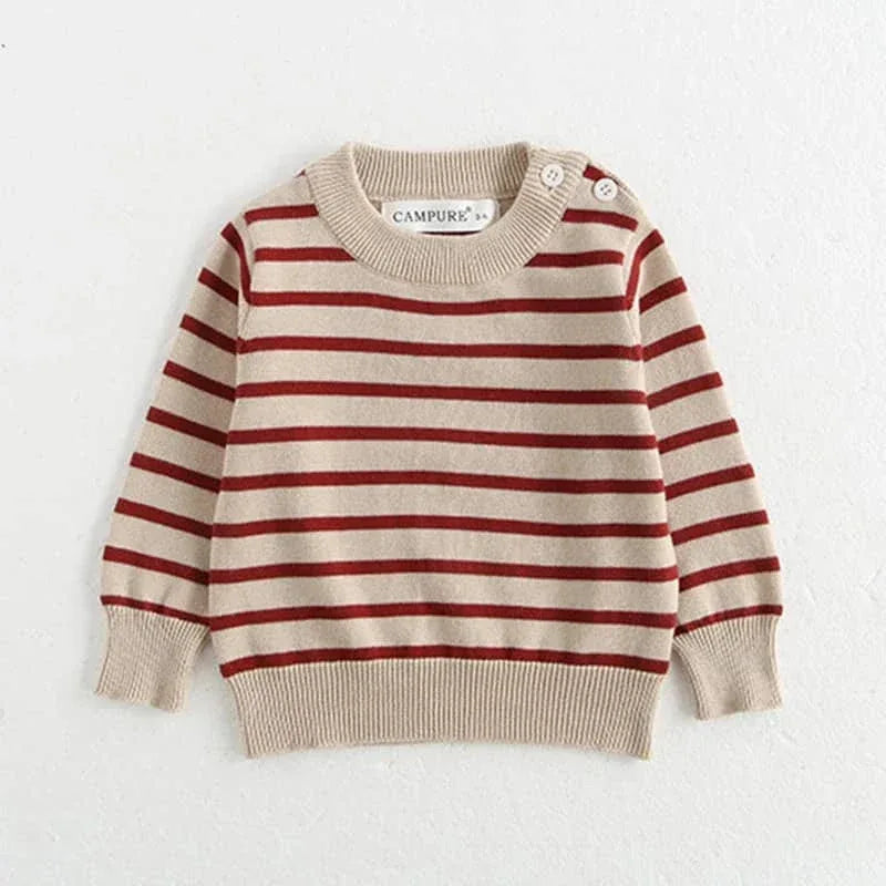 Each children's cozy knit pullover sweater features classic preppy stripes. It comes in four vibrant colors. The look stays adorable and polished at any playdate or outing. Secure buttons on the shoulder make dressing easy for parents and fuss-free for kids.