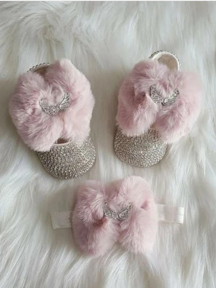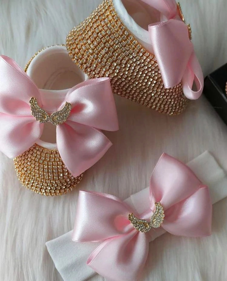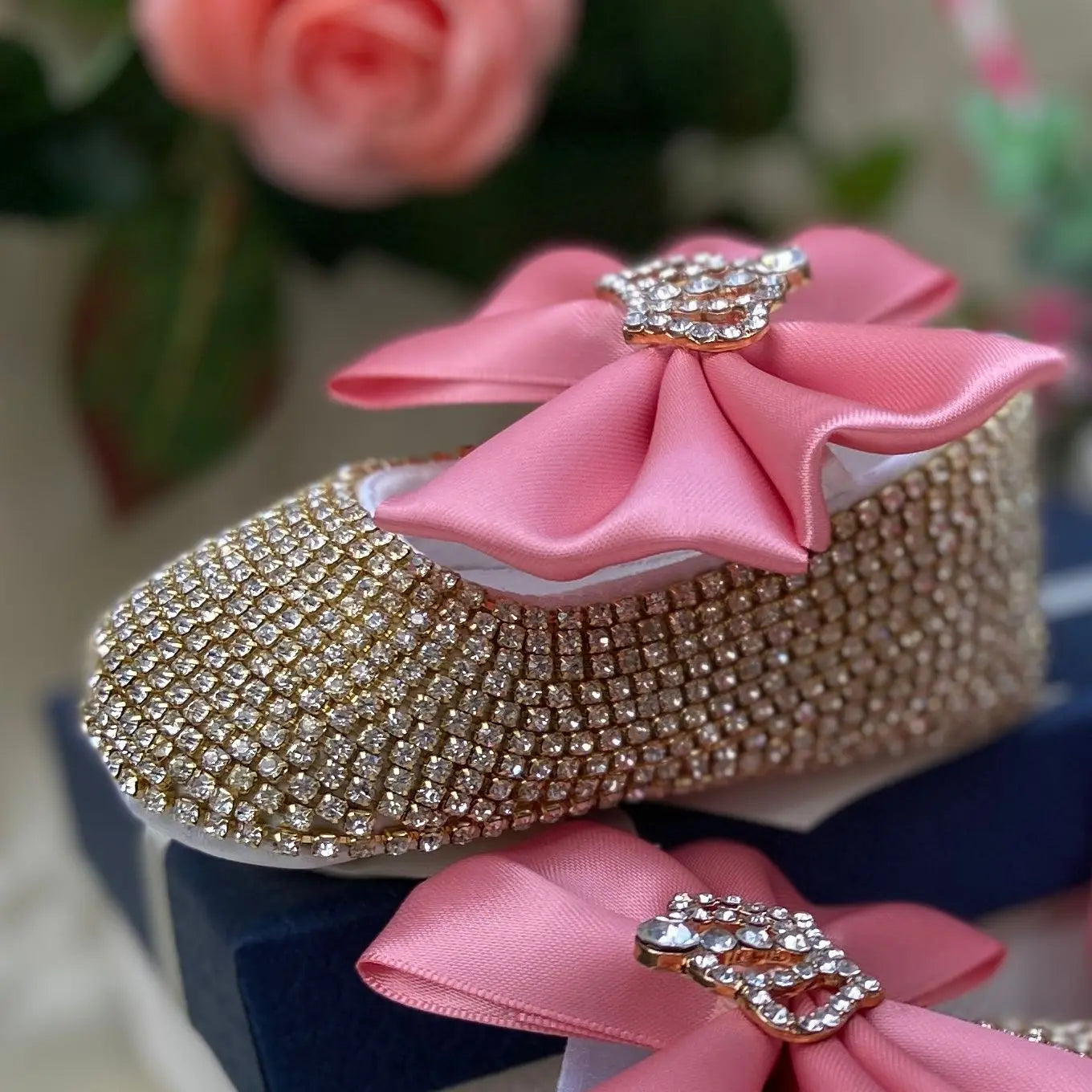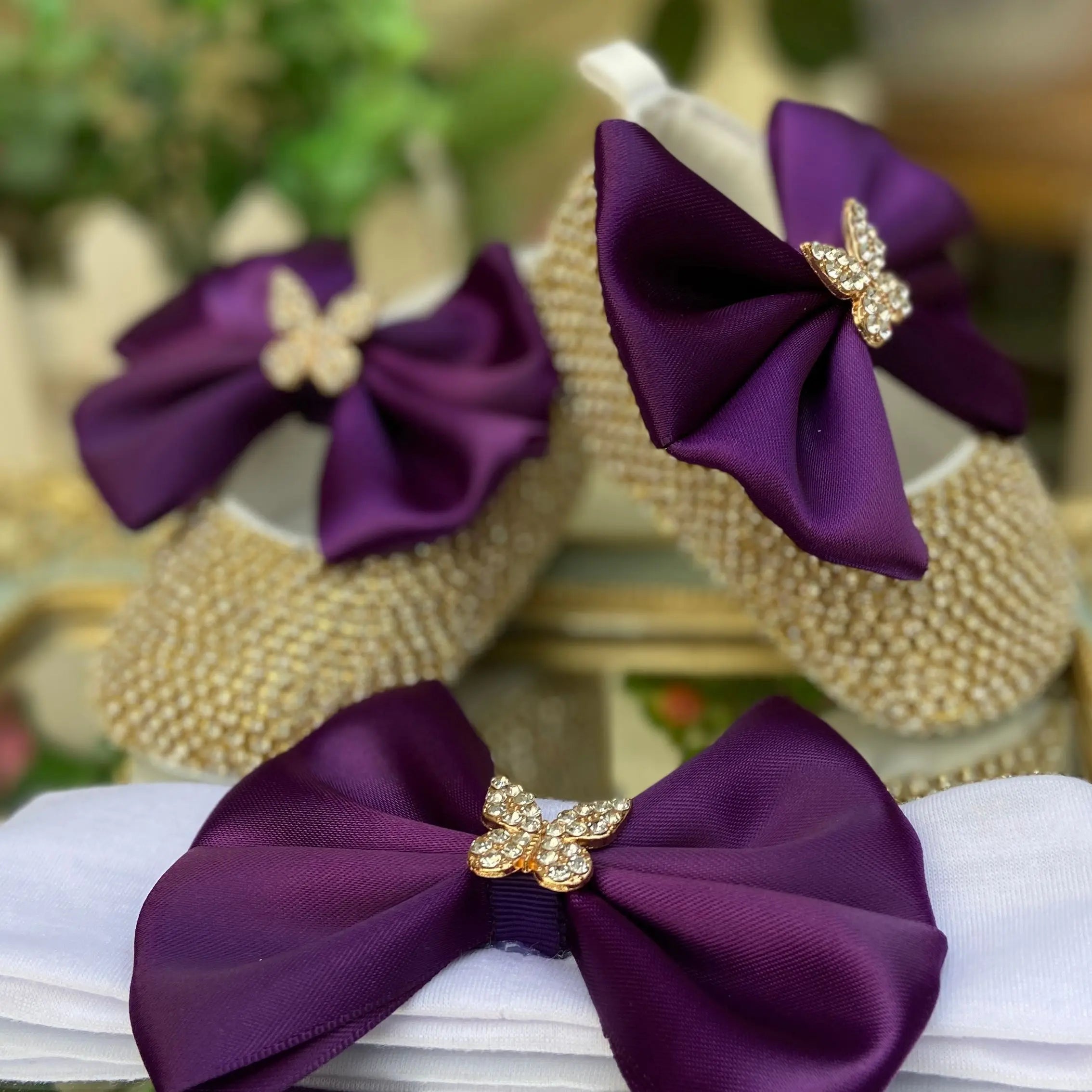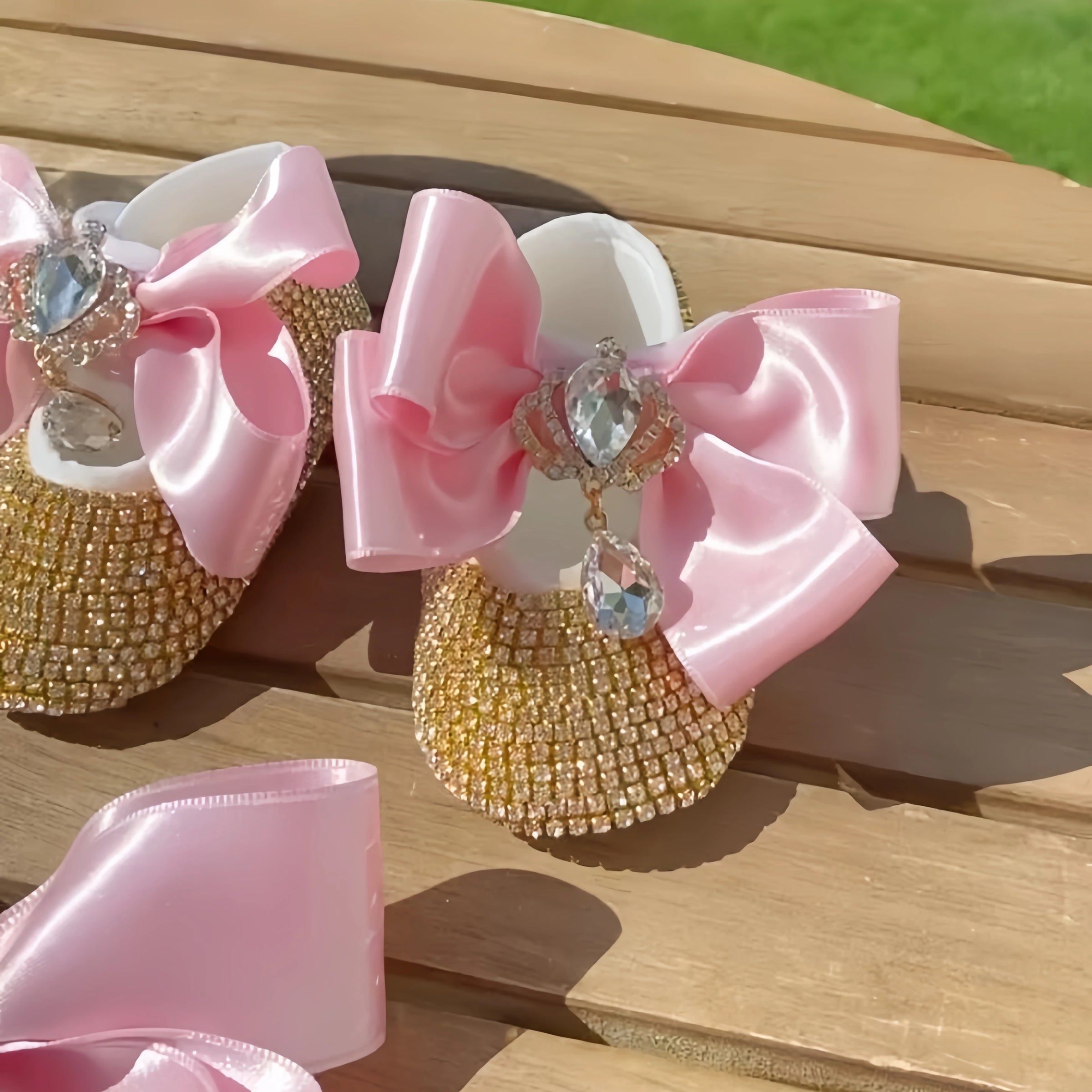 Introducing the "Marissa" set—an exquisite collection designed for your little one's most memorable moments. This curated ensemble features elegant Mary Jane shoes adorned with sparkling rhinestones and a coordinating headband, both customizable in crystal and ribbon colors. Crafted with premium materials, including delicate beads, lace, and ribbons, these keepsake pieces offer a true-to-size fit with soft cotton outer soles suitable for all seasons. Ideal for baptisms, weddings, christenings, celebrations, and professional portraits, the "Marissa" set combines luxury with comfort. Each piece is thoughtfully designed to treasure those precious early memories while keeping your baby's feet gentle and supported. Adult supervision is recommended due to small decorative elements.